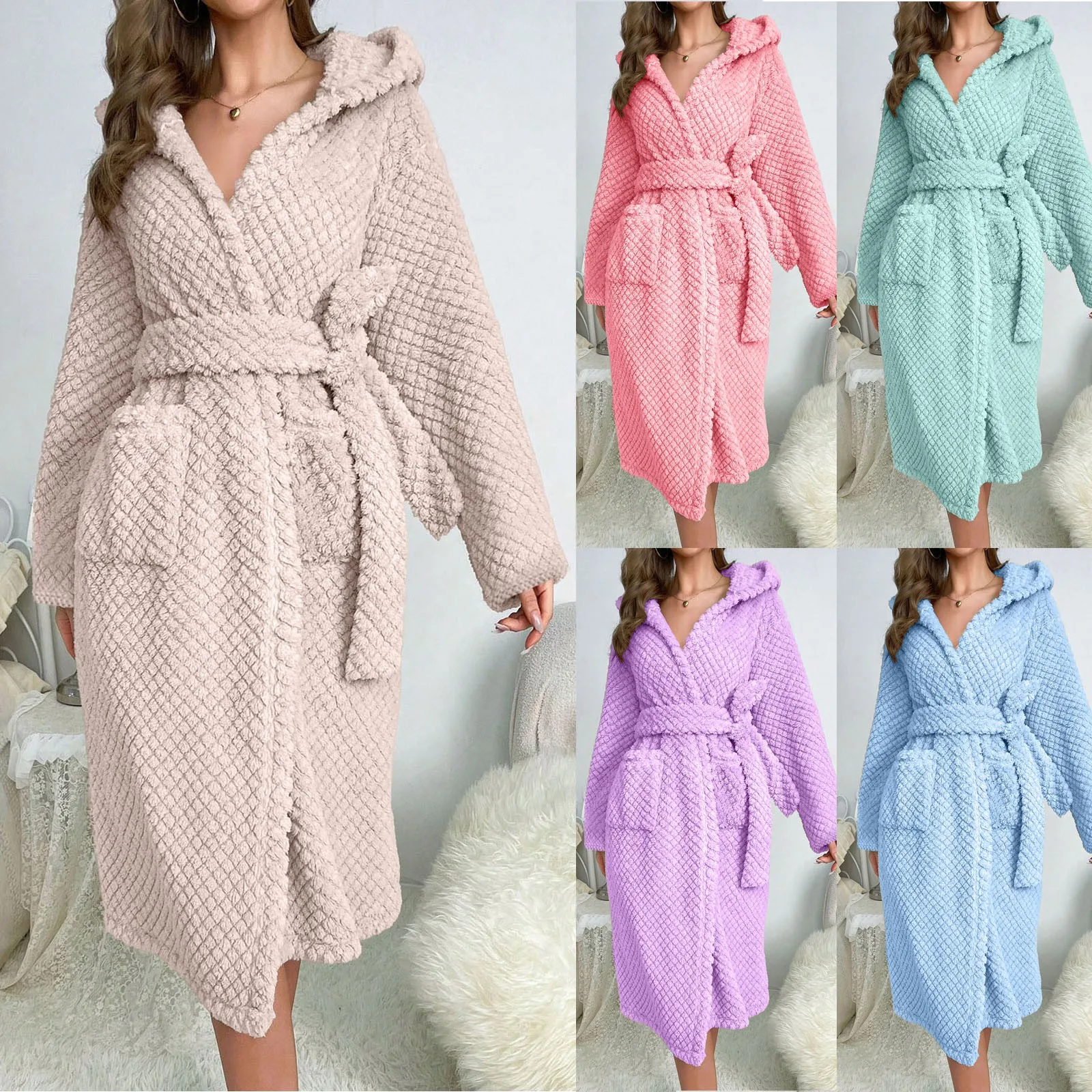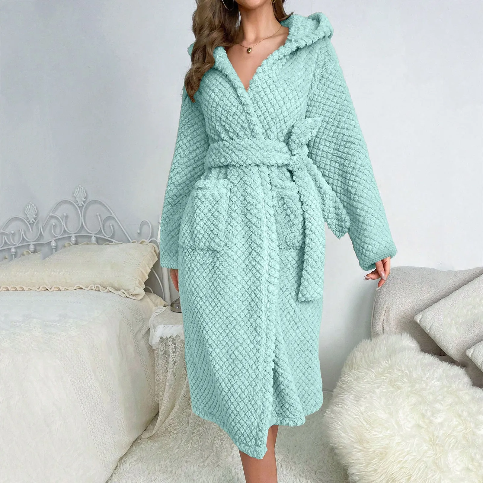 Le peignoir long avec capuche pour femme est un vêtement de nuit en peluche, idéal pour les froides nuits d’hiver. Avec sa robe pleine longueur, il vous enveloppe de chaleur et de douceur tout en vous permettant de rester élégante et féminine chez vous.