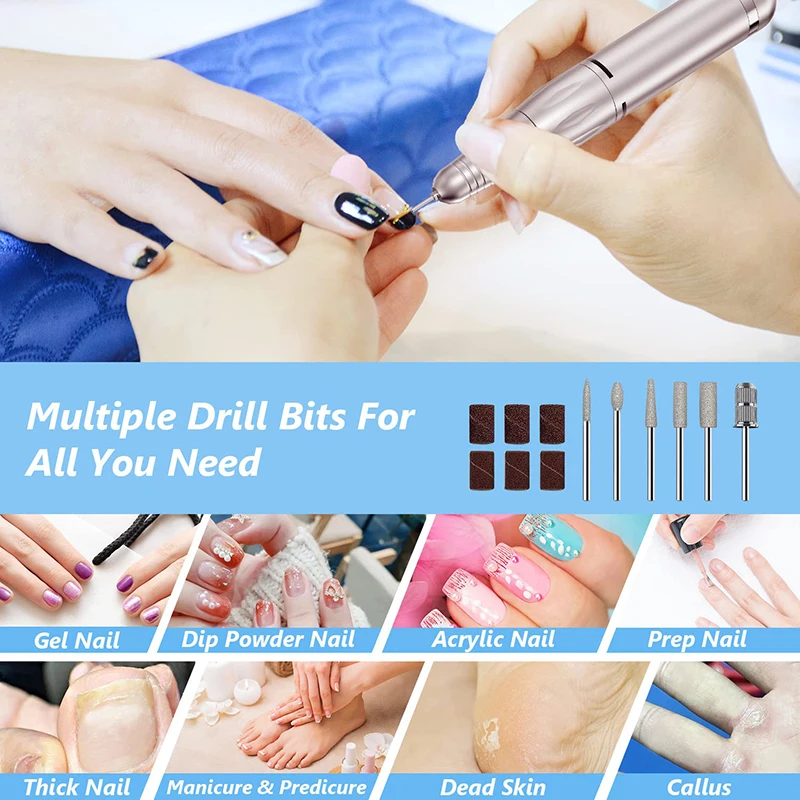 Cette perceuse à ongles est livrée avec 12 types de mèches métalliques et de bandes de ponçage, ce qui la rend polyvalente et fonctionnelle. Que vous souhaitiez polir vos ongles, façonner différentes formes d’ongles ou lisser la peau durcie, cet outil de salon est idéal pour toutes ces tâches. De plus, il est silencieux, ce qui offre une expérience de manucure agréable et relaxante.