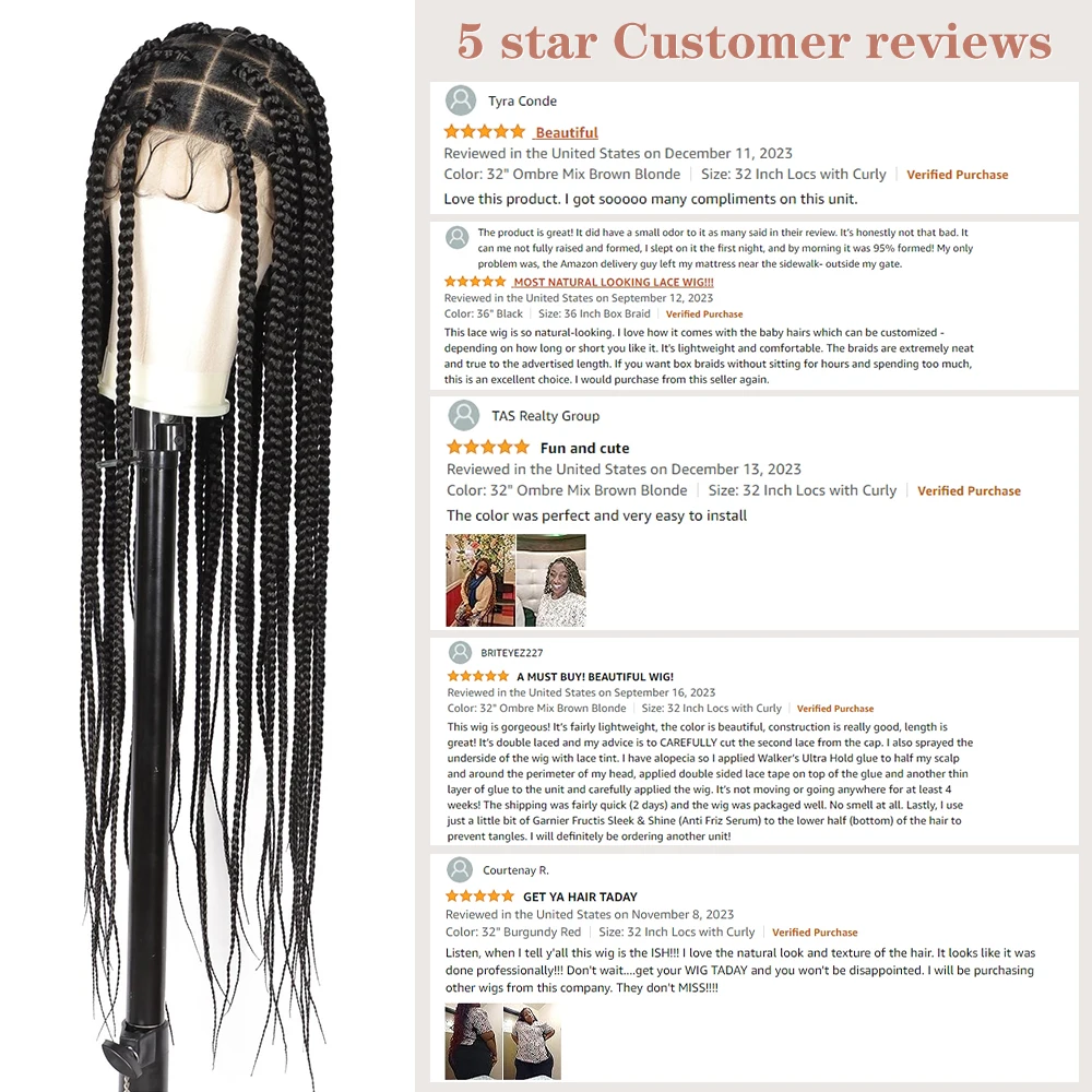 Les perruques tressées carrées sans nœuds pour femmes de Kalyss sont une option intéressante pour celles qui cherchent à changer de coiffure de manière pratique. Avec leur longueur de 36 pouces et leur dentelle HD, ces perruques offrent un aspect naturel et une grande polyvalence.
