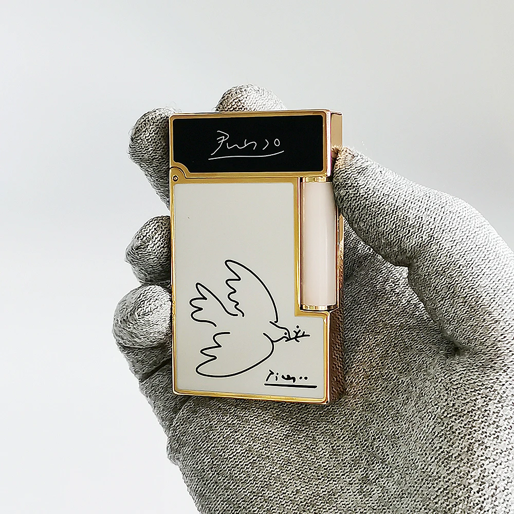 Nouveau Picasso briquets laque blanc paix colombe son ouvert flamme douce fumer outils pour le cadeau du père à la main 2024