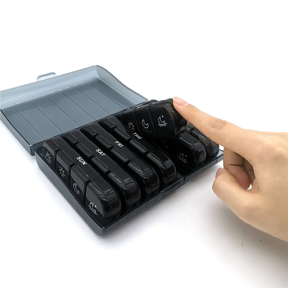 Ne vous inquiétez pas de toucher accidentellement ou des mains curieuses des enfants, l’organisateur de pilules hebdomadaire est doté d’un double joint, donc le couvercle du pilulier restera toujours fermé et ne s’ouvrira jamais dans votre sac ou votre portefeuille.