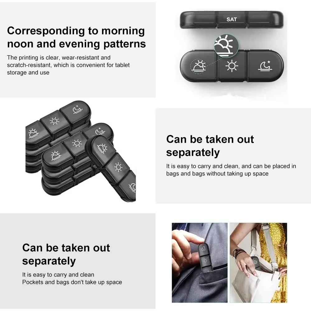 • 21 grilles pour 7 jours : offre un espace suffisant pour stocker les pilules pendant toute la semaine.