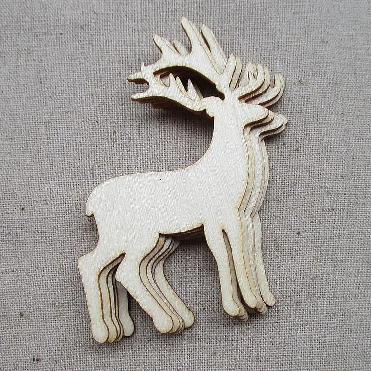 1 x set de 5PCS Renne Découpe Placages Tranches Pour Patchwork DIY Crafting Décoration de Noël Artisanat en bois Embellissement Arbre de Noël Pendentifs Ornements suspendus Étiquette en bois