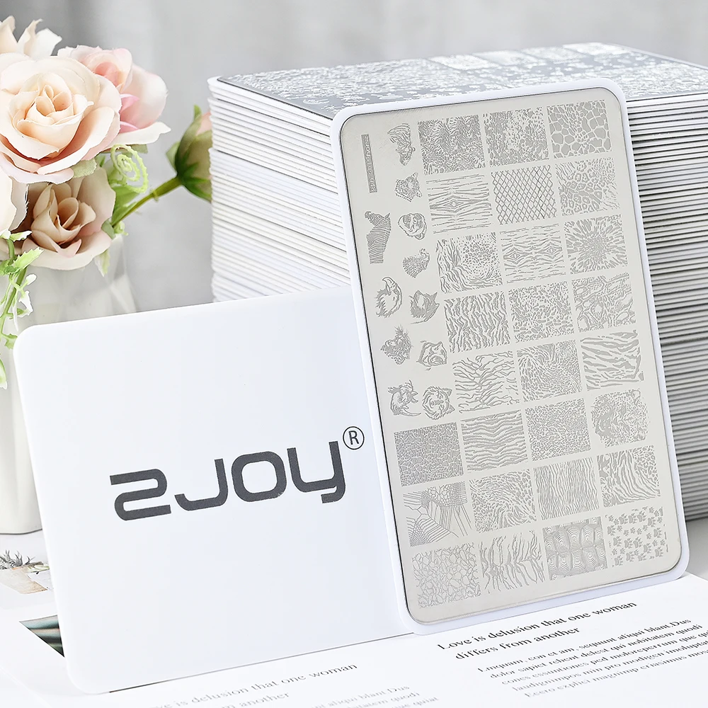 La plaque d’estampage de grande taille pour nail art, de dimensions 9,5×14,5 cm, présente des motifs géométriques, des fleurs, des graffitis et des pochoirs d’impression. Elle est parfaite pour créer des designs originaux sur vos ongles.