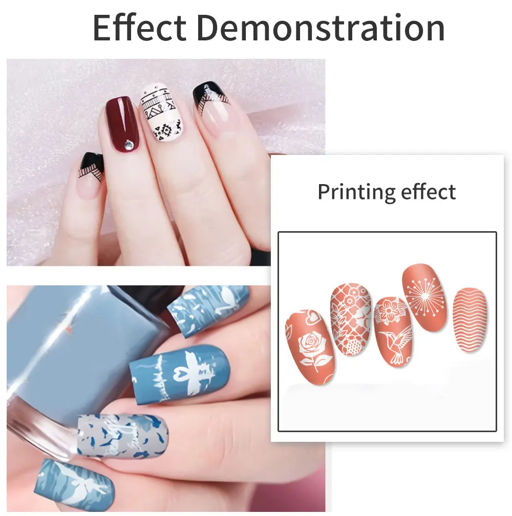 Les plaques d’estampage carrées en silicone sont principalement utilisées pour créer des motifs et des dessins artistiques sur les ongles dans le cadre du nail art.