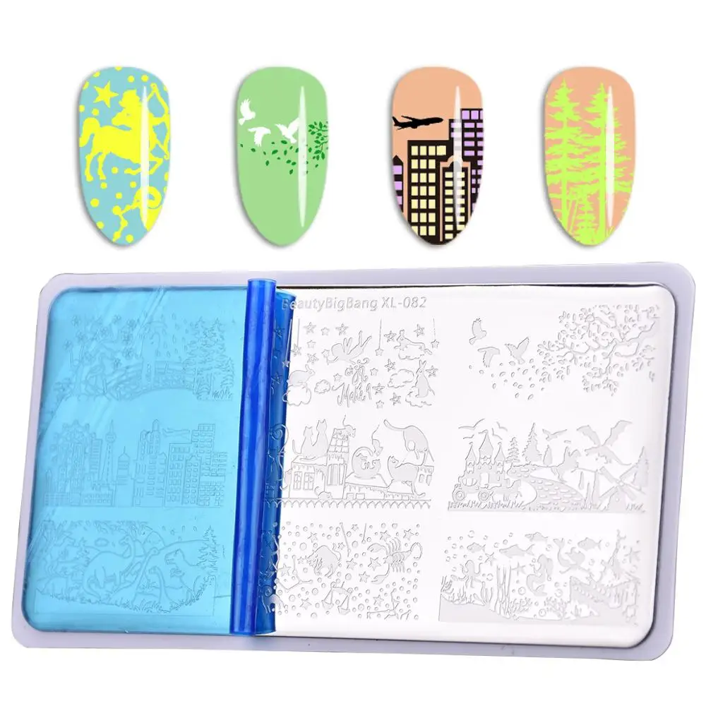 Les plaques d’estampage BeautyBigBang XL-082 sont spécialement conçues pour permettre une impression d’image précise et nette sur les ongles. Chaque plaque mesure 6×12 cm et est fabriquée à partir de matériaux de haute qualité, assurant une durabilité et une utilisation prolongée. Les motifs disponibles incluent des images de maisons, d’étoiles, de villes, de parcs des dinosaures et de couples amoureux.