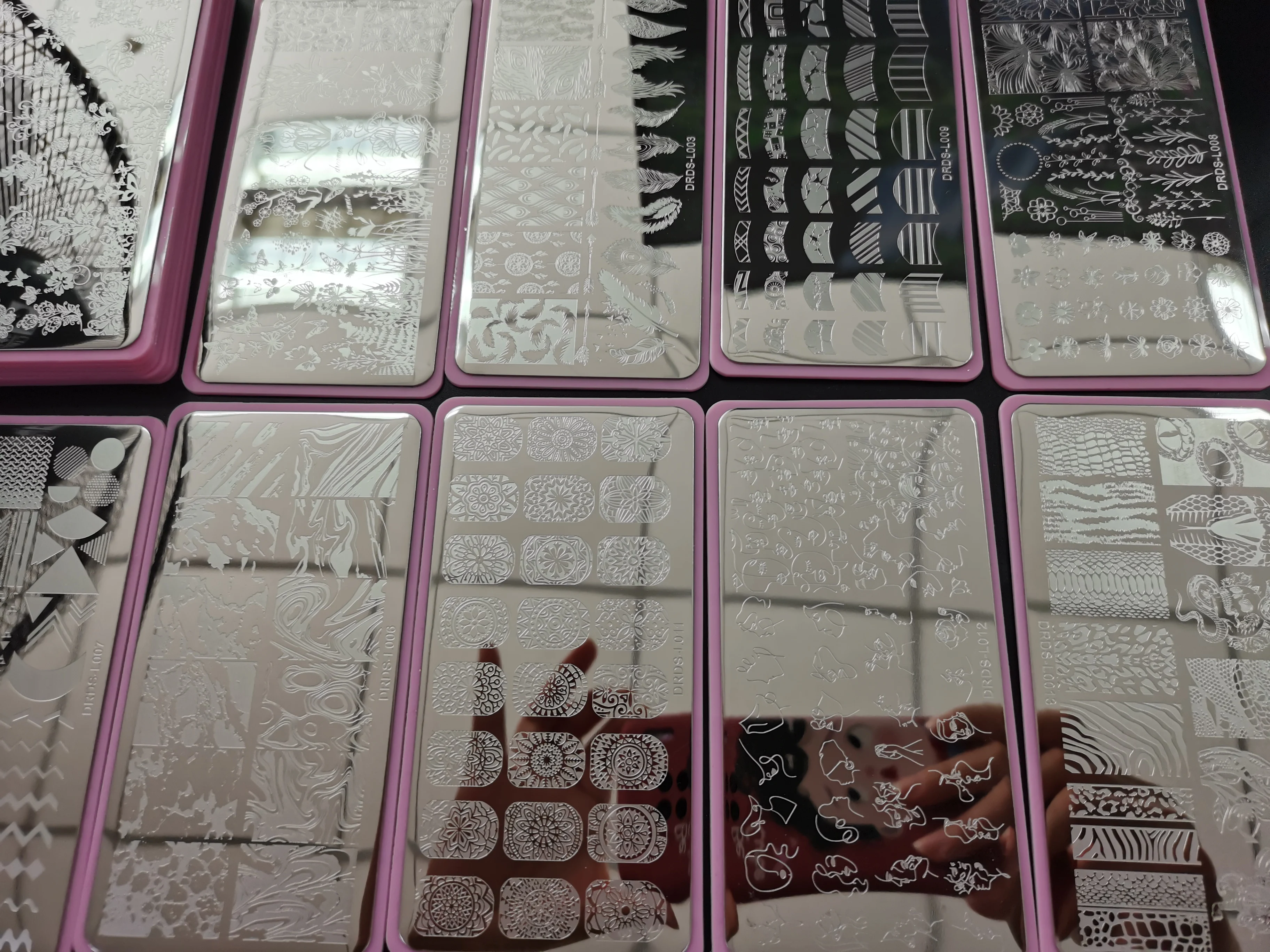 Il est recommandé d’utiliser du vernis d’estampage spécifique pour le transfert des images sur les plaques. Les vernis à ongles réguliers et les gels UV pourraient ne pas fonctionner correctement avec ce produit.