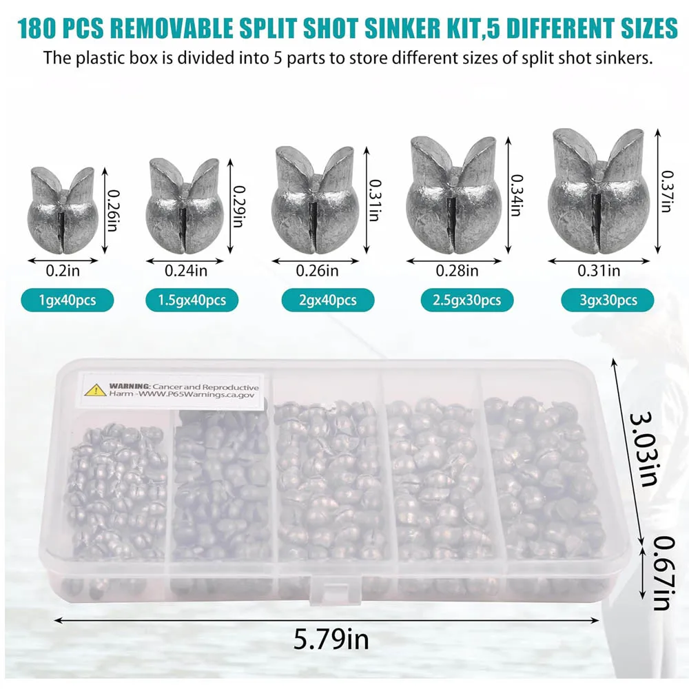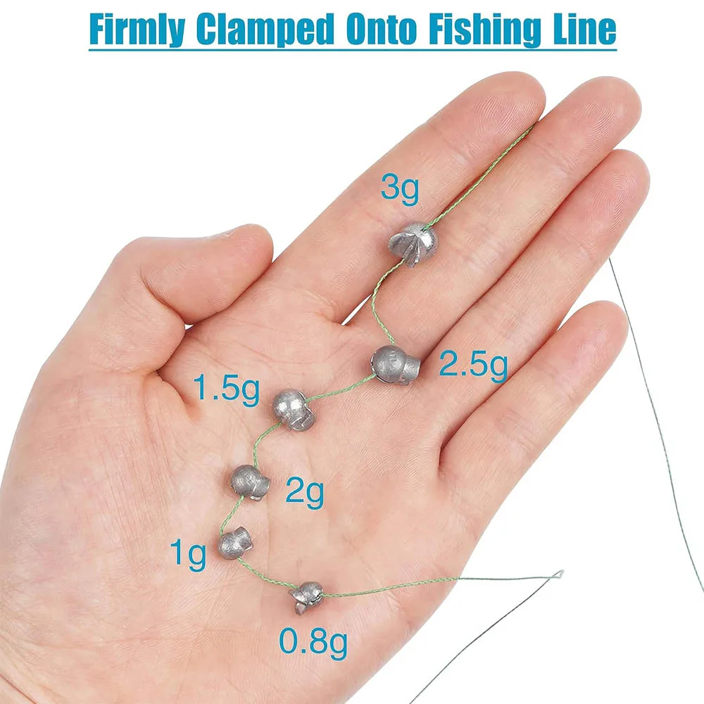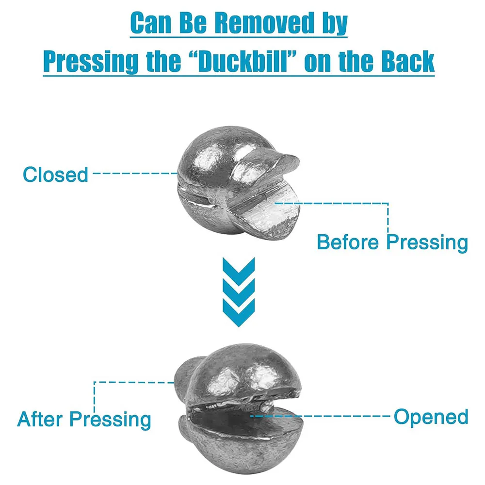 Ces plombs sont faciles à fermer et à ouvrir. Il vous suffit de mettre votre ligne dans la rainure et de presser avec une pince de pêche, ou de les ouvrir facilement le long du bord de l’ouverture si besoin. Cela vous offre un moyen simple d’ajouter ou de supprimer des poids à votre ligne de pêche.