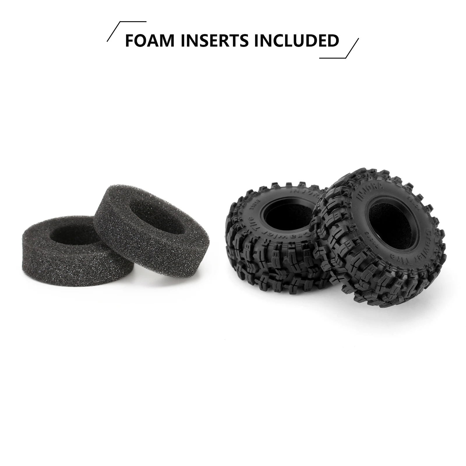 Les inserts en mousse inclus offrent une meilleure stabilité et un meilleur contrôle du véhicule. Les dimensions de ces pneus sont de 58mm de diamètre extérieur et de 24mm de largeur, ce qui les rend adaptés aux voitures RC 1/18 et 1/24 tels que SCX24, AX24, TRX4M et FCX24. Chaque pneu pèse 12g, ce qui le rend léger et ne compromet pas les performances du véhicule.
