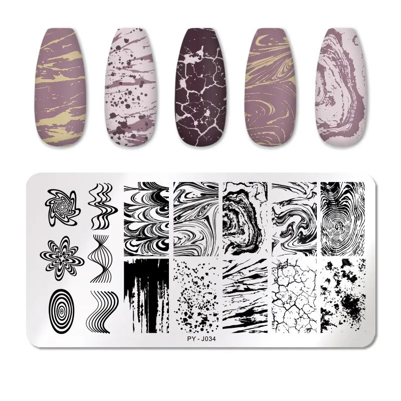 Les plaques sont en acier inoxydable de haute qualité et sont faciles à nettoyer après utilisation. De plus, elles sont livrées avec un mince film protecteur transparent à retirer avant utilisation pour permettre un transfert optimal du vernis à ongles.