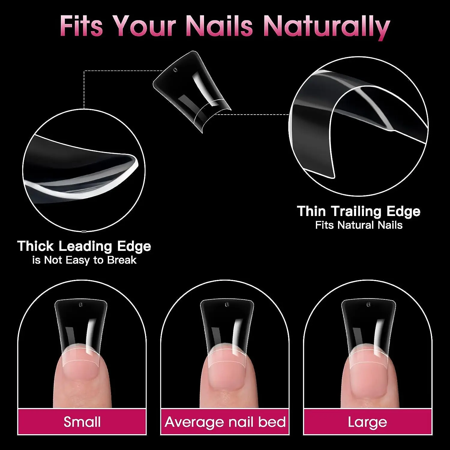 Les pointes d’ongles transparentes adoptent un matériau en gel doux de qualité, la structure des pointes d’ongles claires est ferme et pas facile à casser; le gel x est une sorte de matériau environnemental vert, rend les pointes d’ongles claires durables et respirantes. Les pointes d’ongles de canard vous offrent une expérience de manucure sûre et confortable. L’épaisseur et la fermeté des faux ongles en acrylique sont suffisamment robustes pour durer environ 2 à 3 semaines, des pointes d’ongles claires avec une longue durée de vie, vous offrant une expérience sûre et confortable.