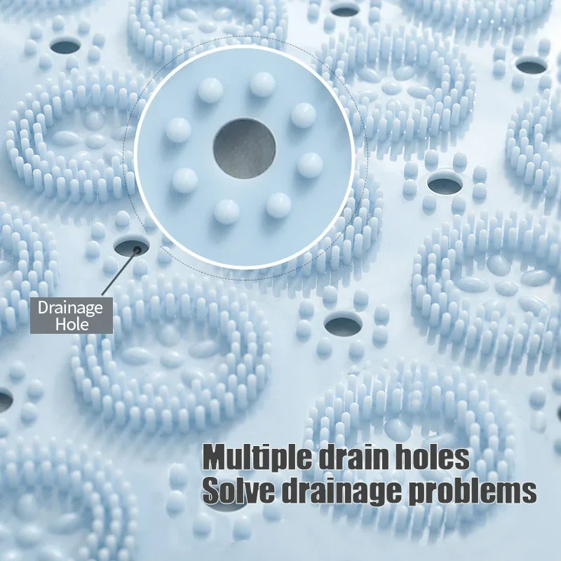 Le tapis de bain rond antidérapant est fabriqué en PVC, un matériau respectueux de l’environnement. Il offre une protection contre les glissades dans la salle de bain grâce à sa surface antidérapante. L’arrière du tapis est équipé de ventouses puissantes pour prévenir efficacement les chutes. De plus, sa surface texturée permet de masser la plante des pieds tout en augmentant la résistance au glissement.