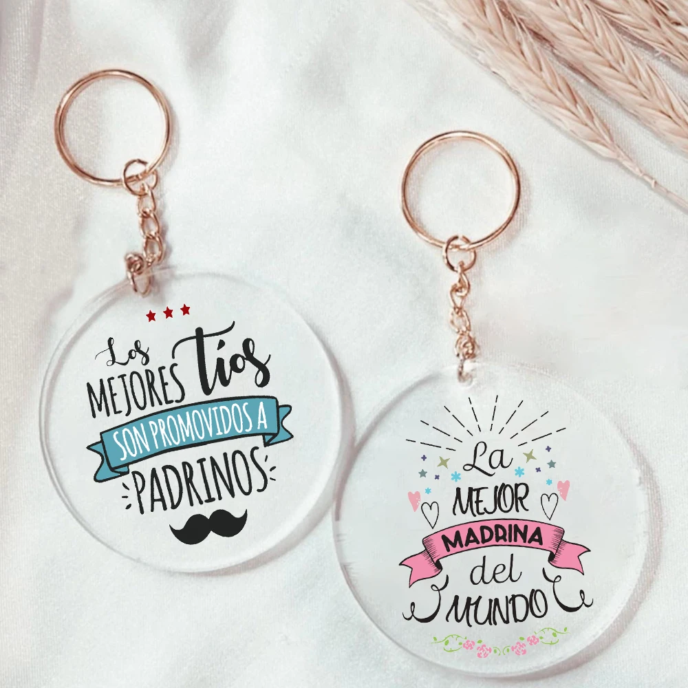 | Description du produit | Meilleure marraine/parrain dans le monde porte-clés imprimé espagnol cercle porte-clés acrylique porte-clés cadeau d’anniversaire pour Padrinos Madrina |
