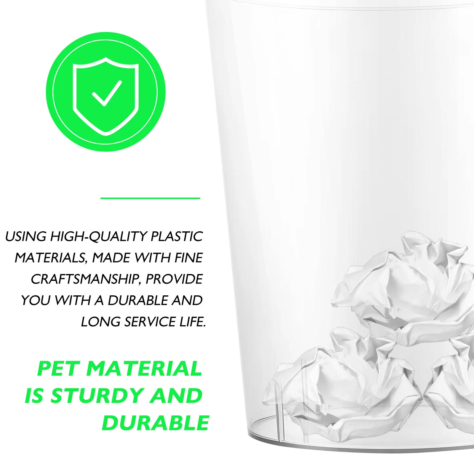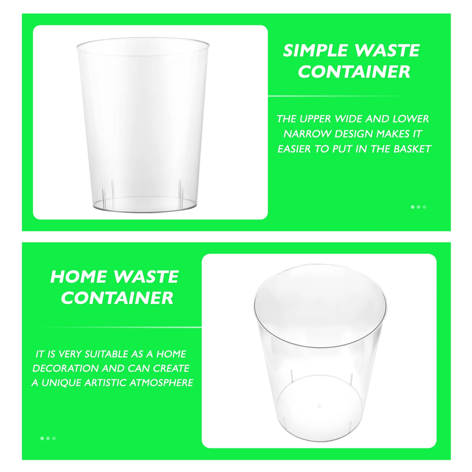 La poubelle transparente pour décoration de bureau est un excellent choix pour ajouter une touche de modernité à votre espace de travail. Sa conception simple et élégante s’intègre facilement à n’importe quel style de décoration.