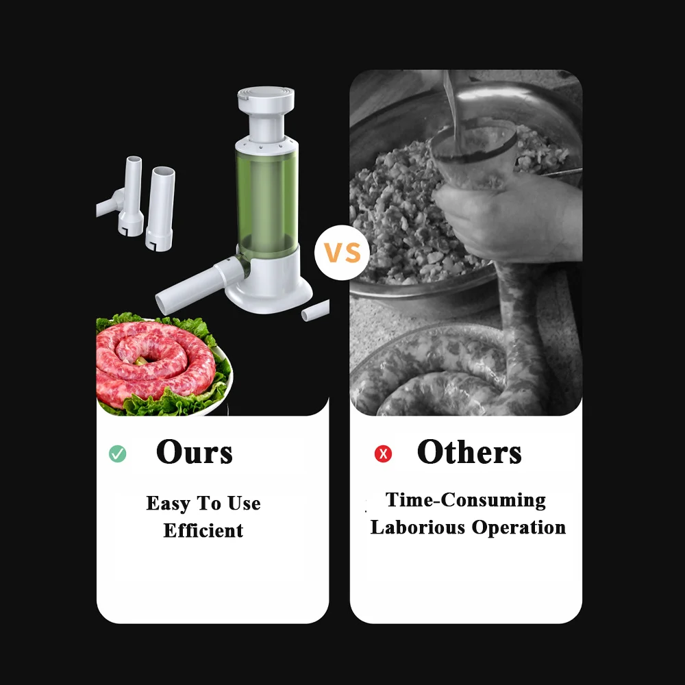 • Le paquet comprend: 1 poussoir à saucisse, 4 buses de remplissage