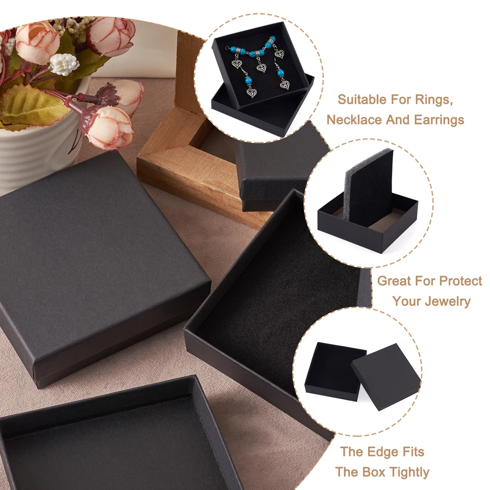 Les boîtes à bijoux en carton rectangulaires et carrées sont vraiment pratiques pour ranger vos bijoux en toute sécurité. Elles sont idéales pour emballer des cadeaux comme des bracelets, des pilotes USB, de petits bibelots, des pendentifs, des bracelets, des chaînes, des broches et d’autres choses facilement endommagées. Vous pouvez également personnaliser ces boîtes avec de la peinture ou de l’encre pour les rendre uniques. De plus, elles sont livrées avec un coussin noir pour une meilleure protection de vos colliers ou bracelets. Les fentes de fonction permettent de garder vos bijoux bien en place. Ces boîtes conviennent également pour la décoration avec rubans, corde de chanvre et nœuds papillon.