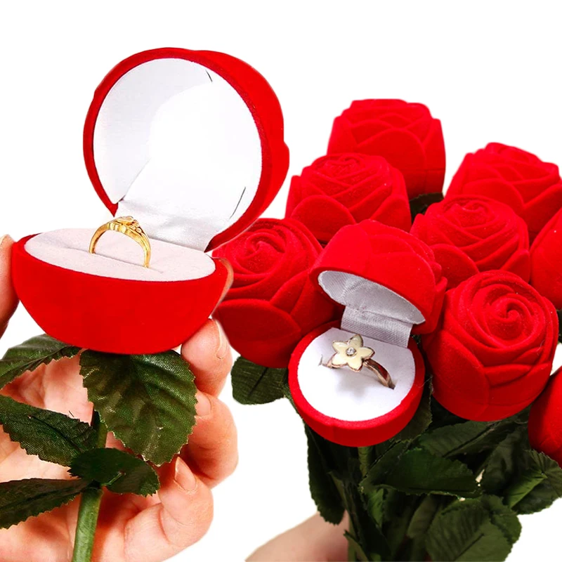 Les boîtes à bagues roses en velours rouge sont de magnifiques étuis de rangement de bijoux de fiançailles et de mariage. Elles offrent une superbe présentation pour les bagues et les boucles d’oreilles, grâce à leur design en forme de rose.