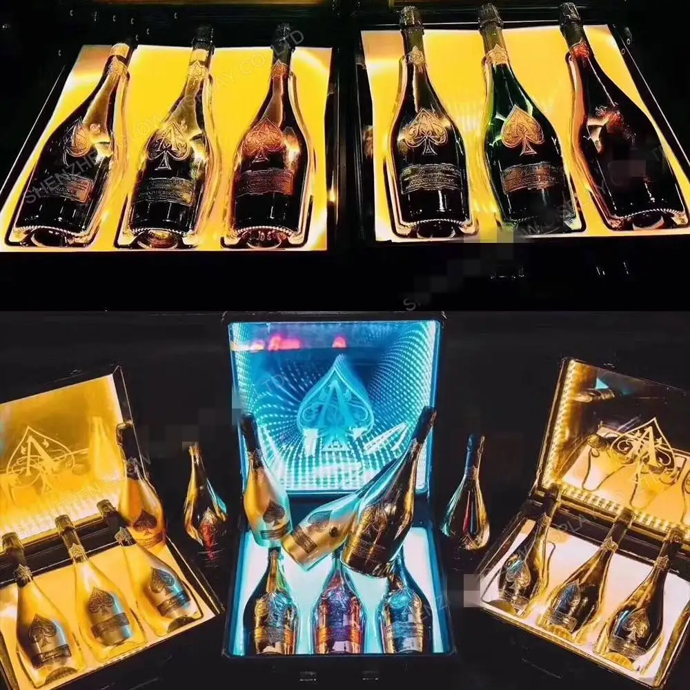 Test et avis sur le Présentoir de bouteilles de champagne Ace personnalisé, porte-bêche LED, boîte de transport, mallette de présentation, valise de boîte de nuit, 3 bouteilles