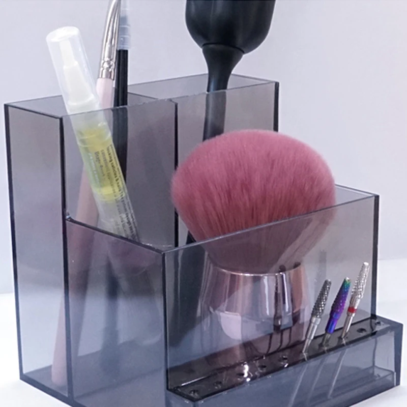 - Le double trou de la rangée la plus haute pour le stockage de la perceuse à ongles plug and pen; La rangée du milieu pour la perceuse à ongles, la rangée la plus basse avec 10 trous pour les forets à ongles. (Ou des pinceaux de maquillage, des sourcils/fard à paupières/crayon eye-liner)