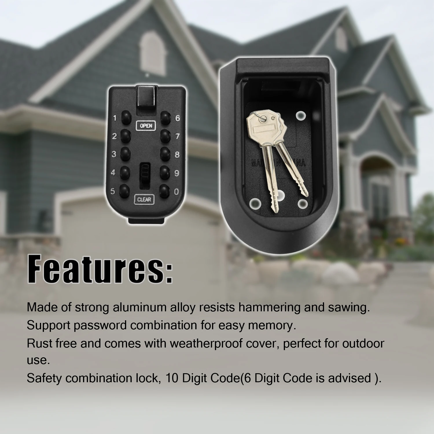 - Serrure à combinaison de sécurité, code à 10 chiffres (code à 6 chiffres conseillé)