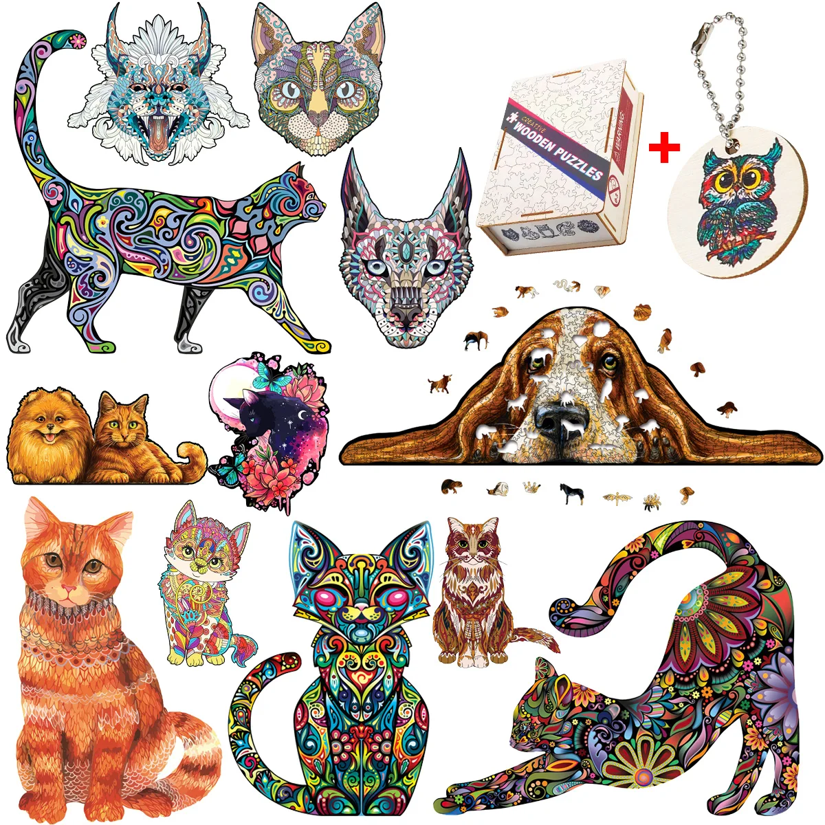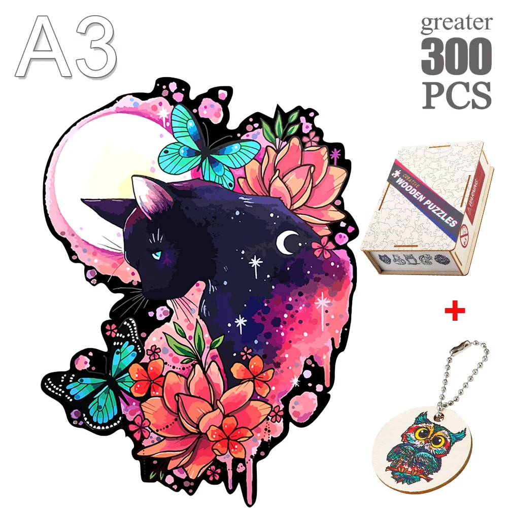 - Jeu de puzzle de chat mystérieux et charmant en bois exquis