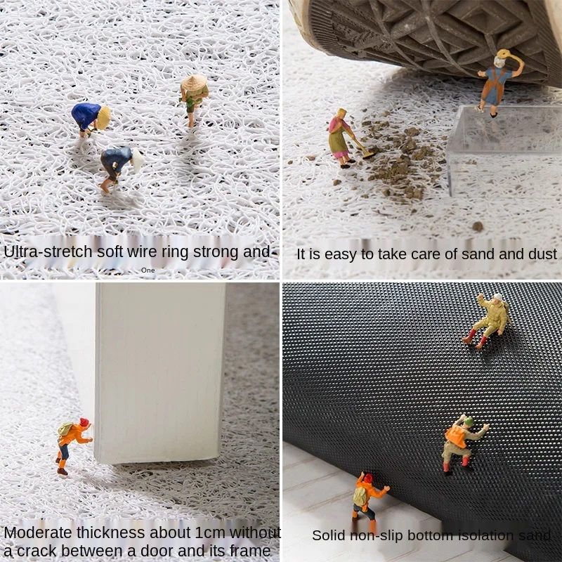 Le tapis a une base en caoutchouc au fond et un revêtement en PVC moelleux à l’extérieur. Ce matériau est résistant à l’humidité, aux températures élevées et basses, ce qui le rend parfait pour une utilisation à l’entrée de la maison.