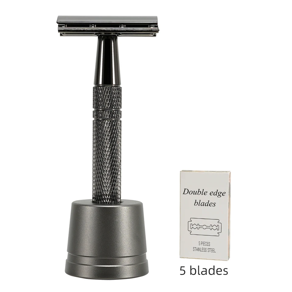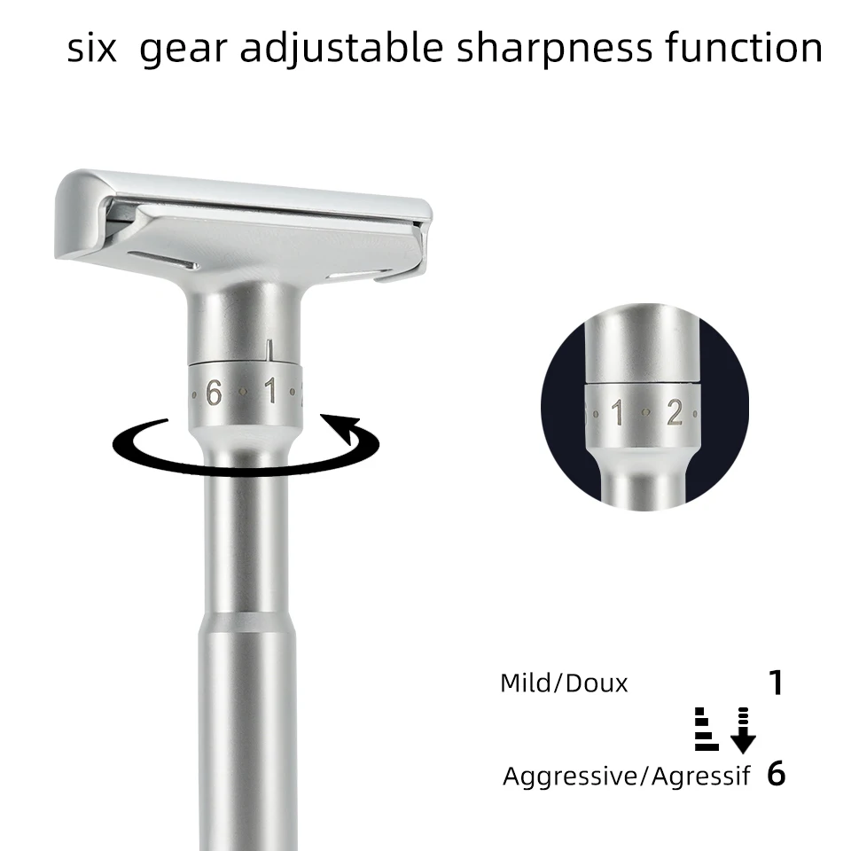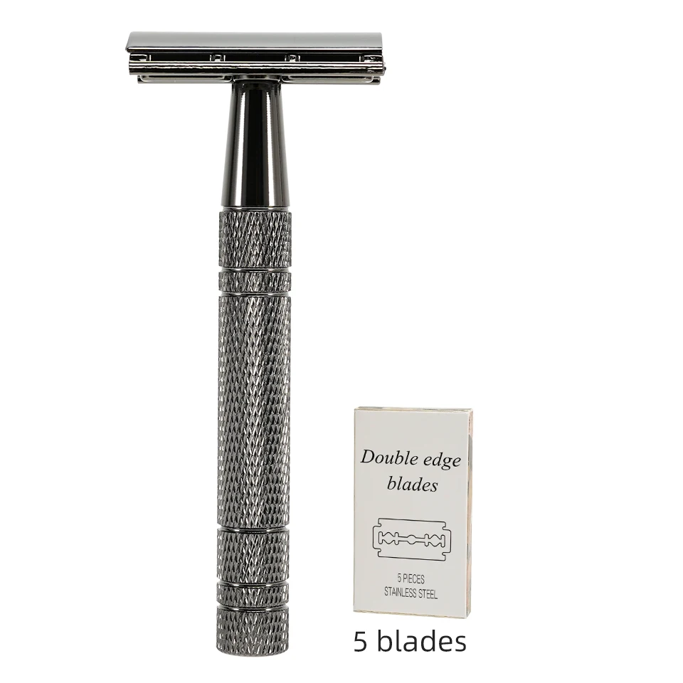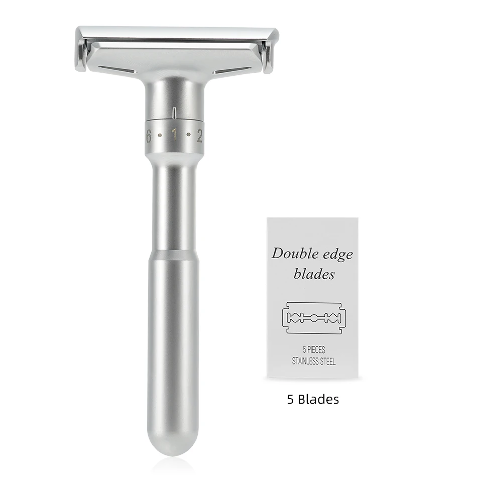 | Nom du produit | Rasoir de sécurité classique à Double tranchant réglable pour hommes, avec 5 lames revêtues de titane, épilation |