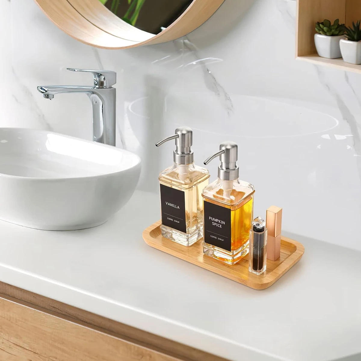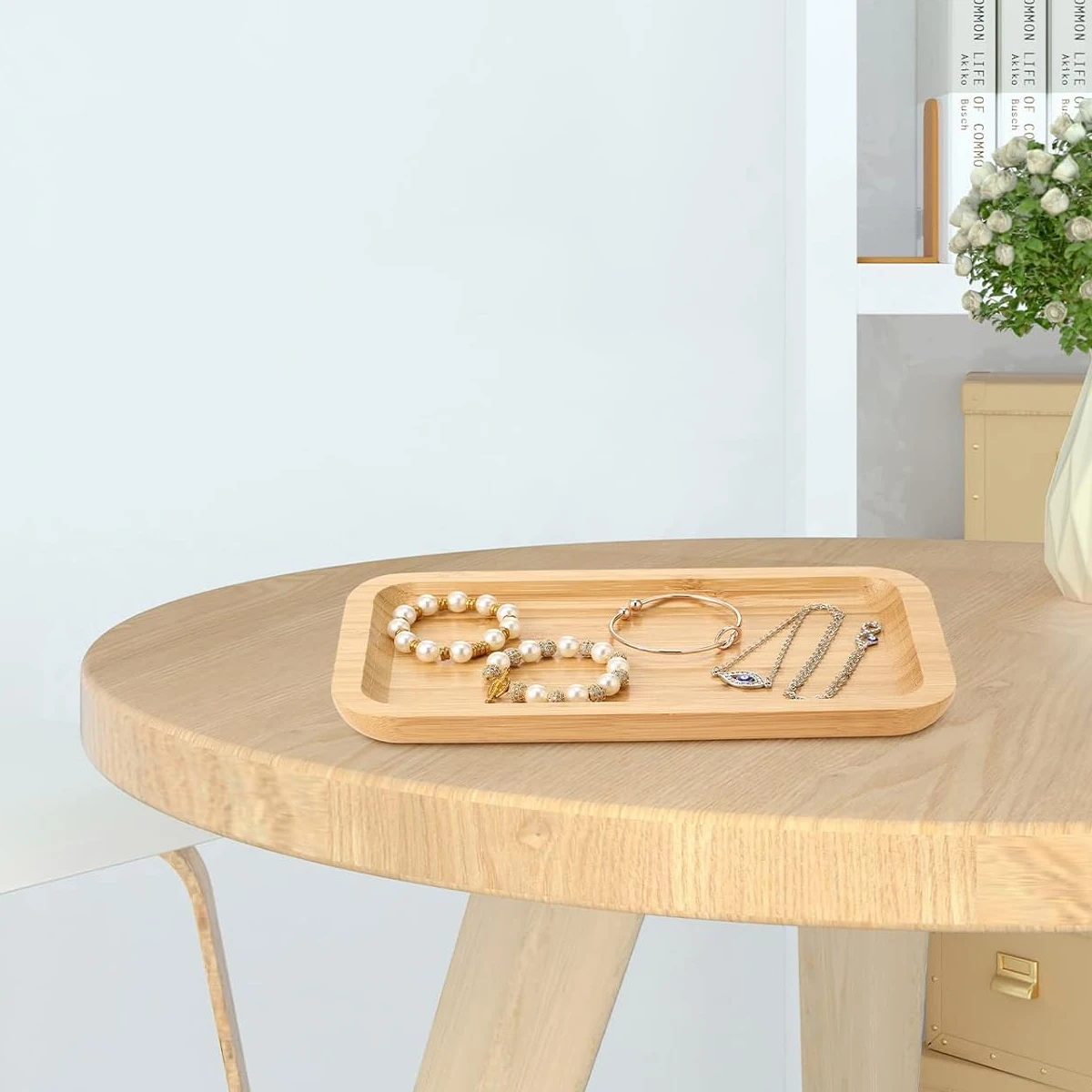Salle de bain Bambou Vanité Plateau Rectangulaire Bois Toilette Comptoir Organisateur Titulaire Comptoir Distributeur de Savon Bougie Bijoux Plateau