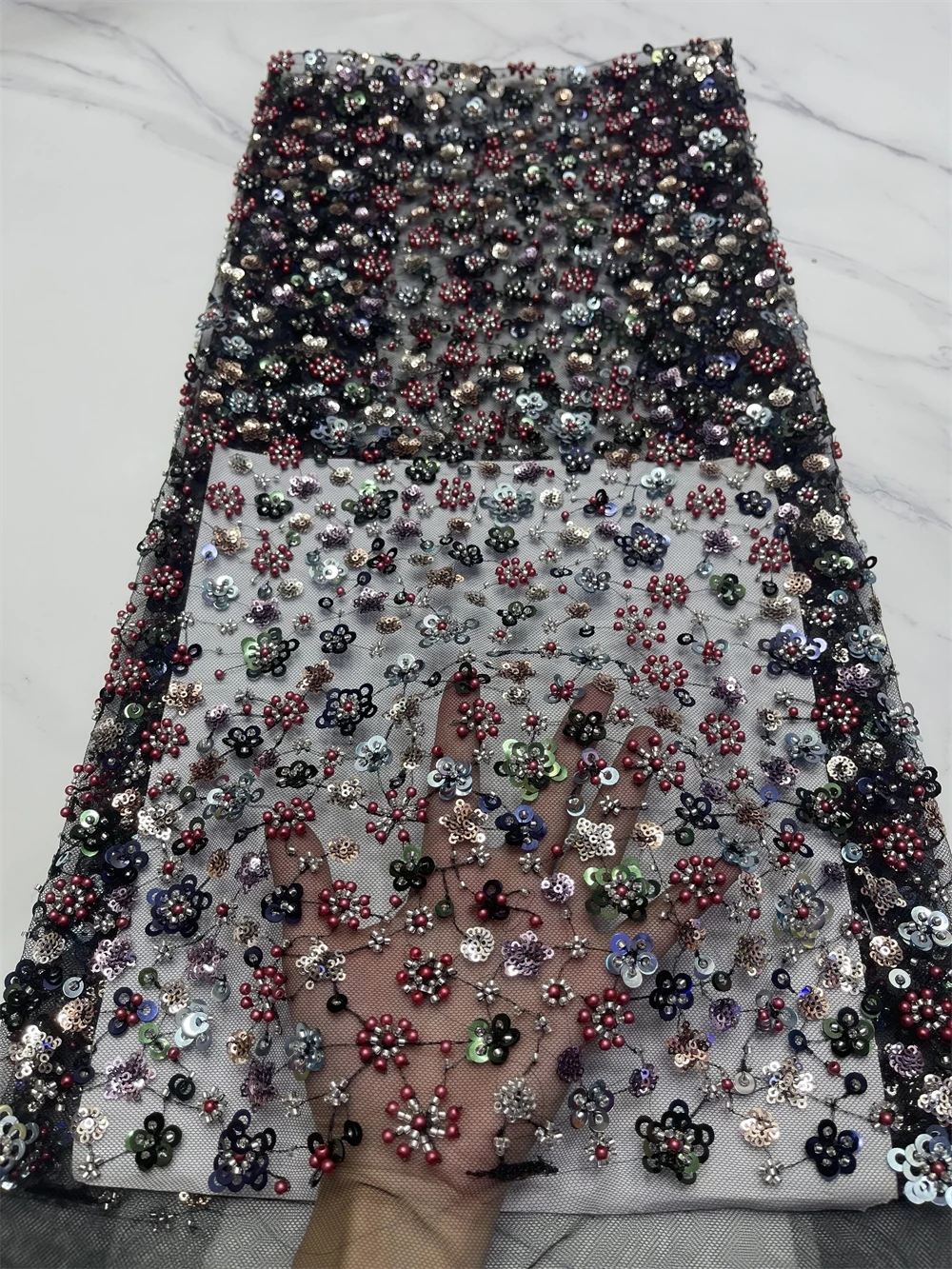 - Tissu de dentelle brodée haut de gamme, sans rides