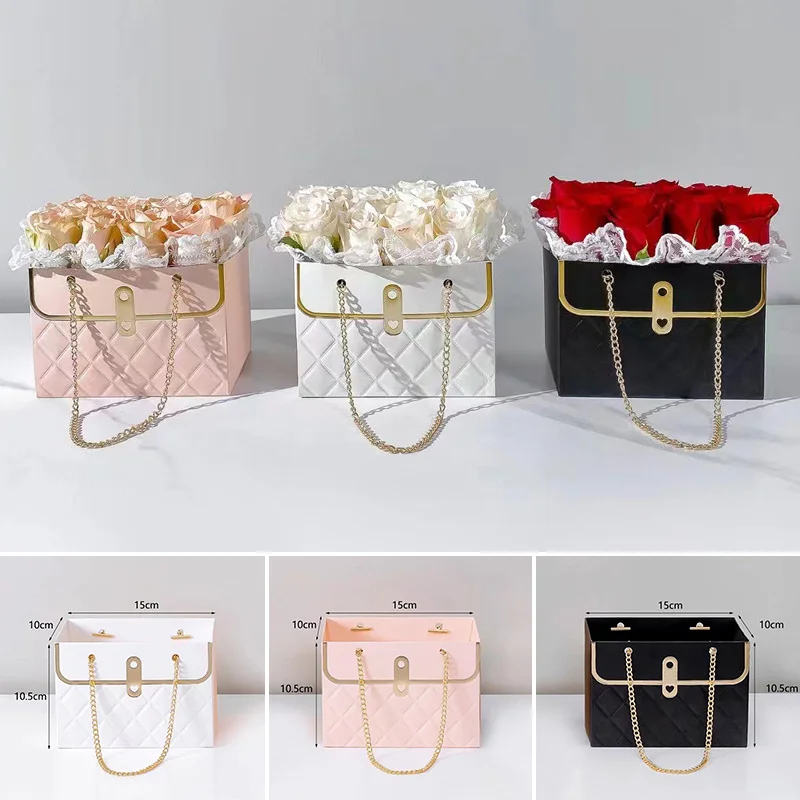 La taille de la boîte d’emballage de fleurs est de 15*10*10.5cm.