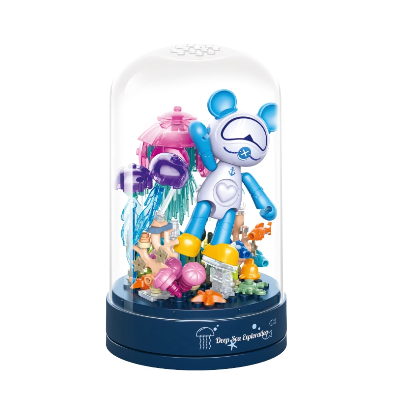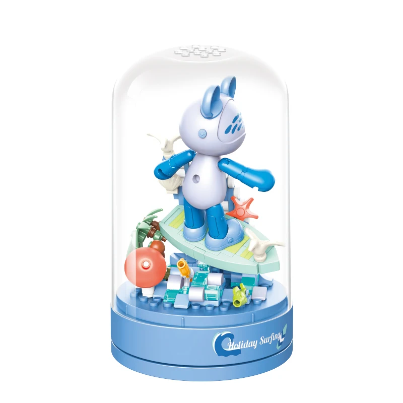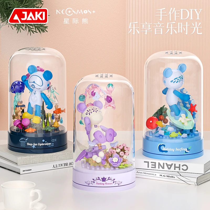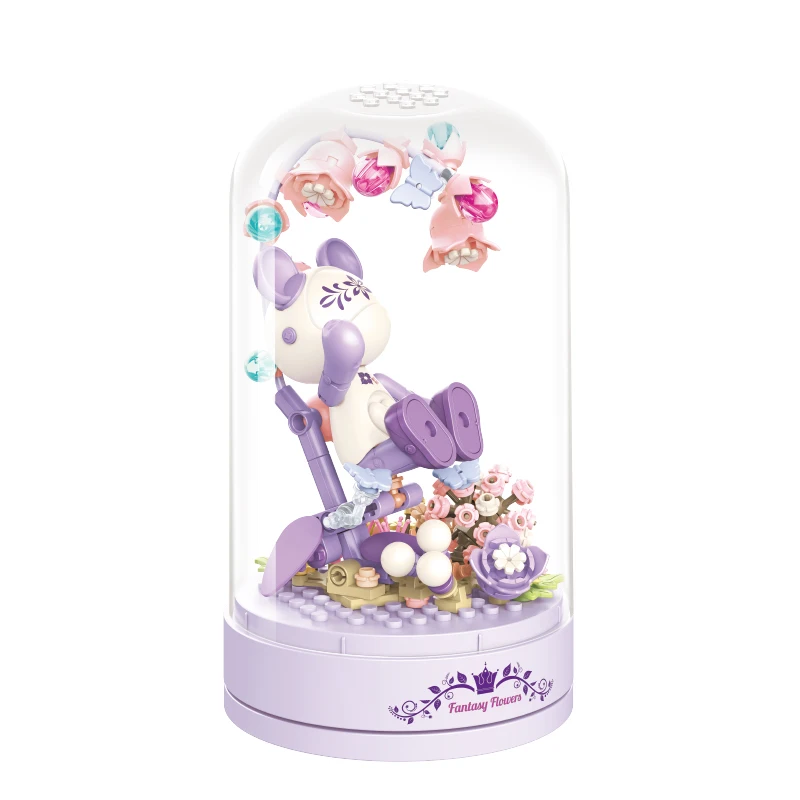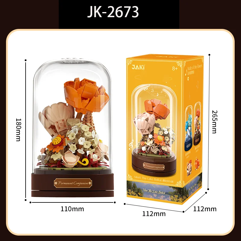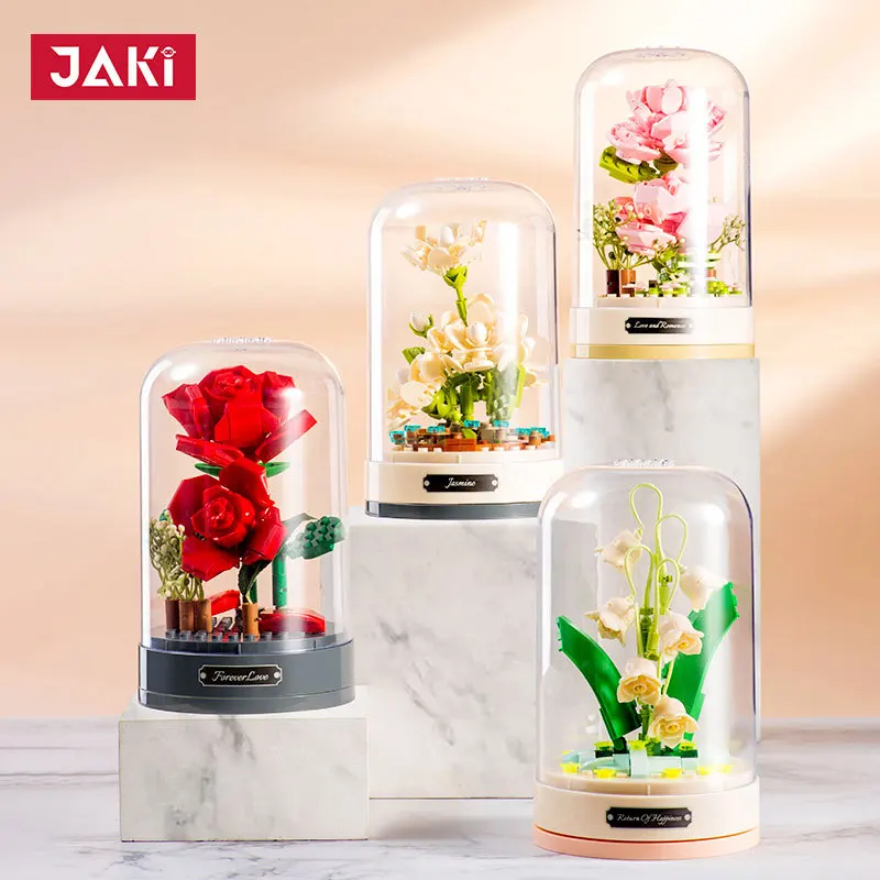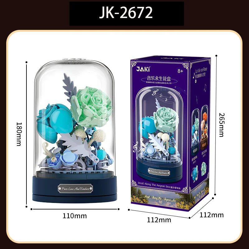 Bloc de construction de boîte à musique classique, fleur de rose, décoration d’assemblage de fleurs, cadeau du jour de Léon