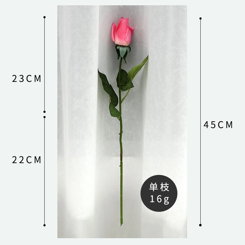 - R: Chaque rose a une longueur totale de 45 cm et un diamètre de tête de fleur de 4,5 cm.