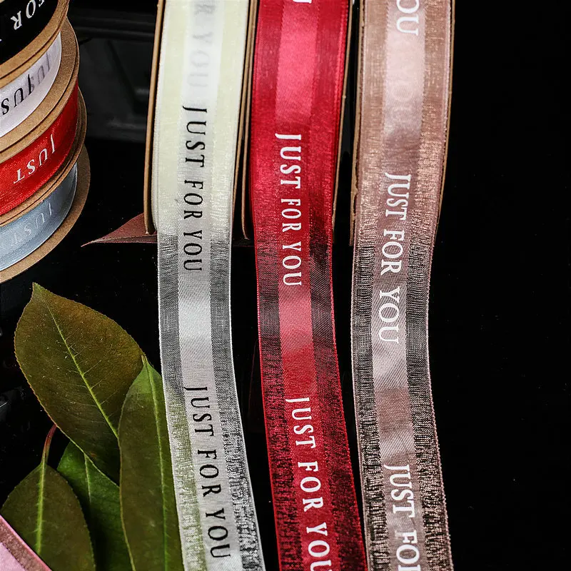 Ruban d’emballage de fleurs, boîte-cadeau, ruban Dacron, décoration de bouquet floral, ruban de lettre d’emballage de cadeau de bricolage, 50 mètres, 25mm