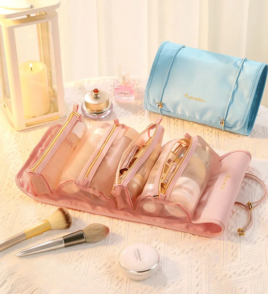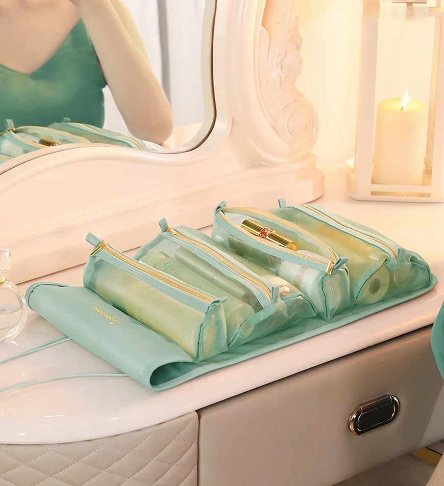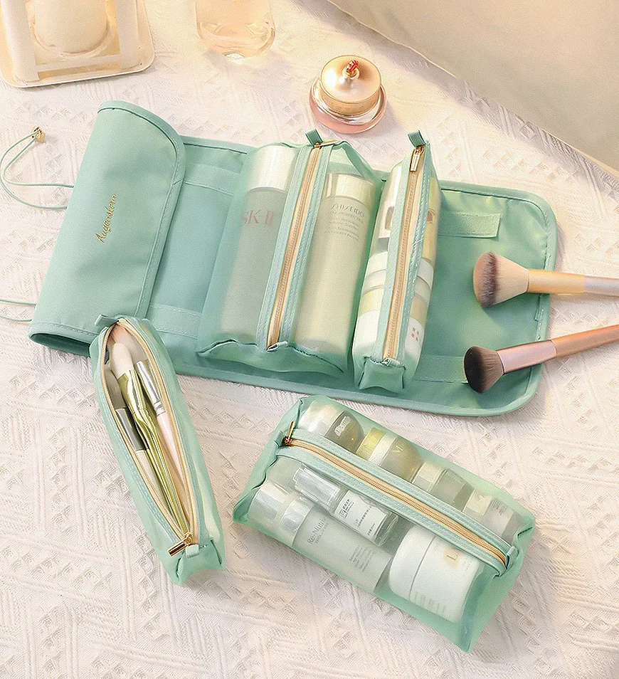 Gemaakt van Hoge-kwaliteit terylene, ingebouwde 4 opslag netto zak (2 grote en 2 kleine zakken), waterdicht en vuil-proof. Mesh faire tassen, in een oogopslag duidelijk. De grote grootte is geschikt voor make-up kwasten en gebotteld huidverzorgingsproducten, en het kleine formaat is geschikt voor diverse cosmetica. » Chaque sac cosmétique est équipé d’une fermeture velcro, qui peut être facilement démontée pendant les voyages.