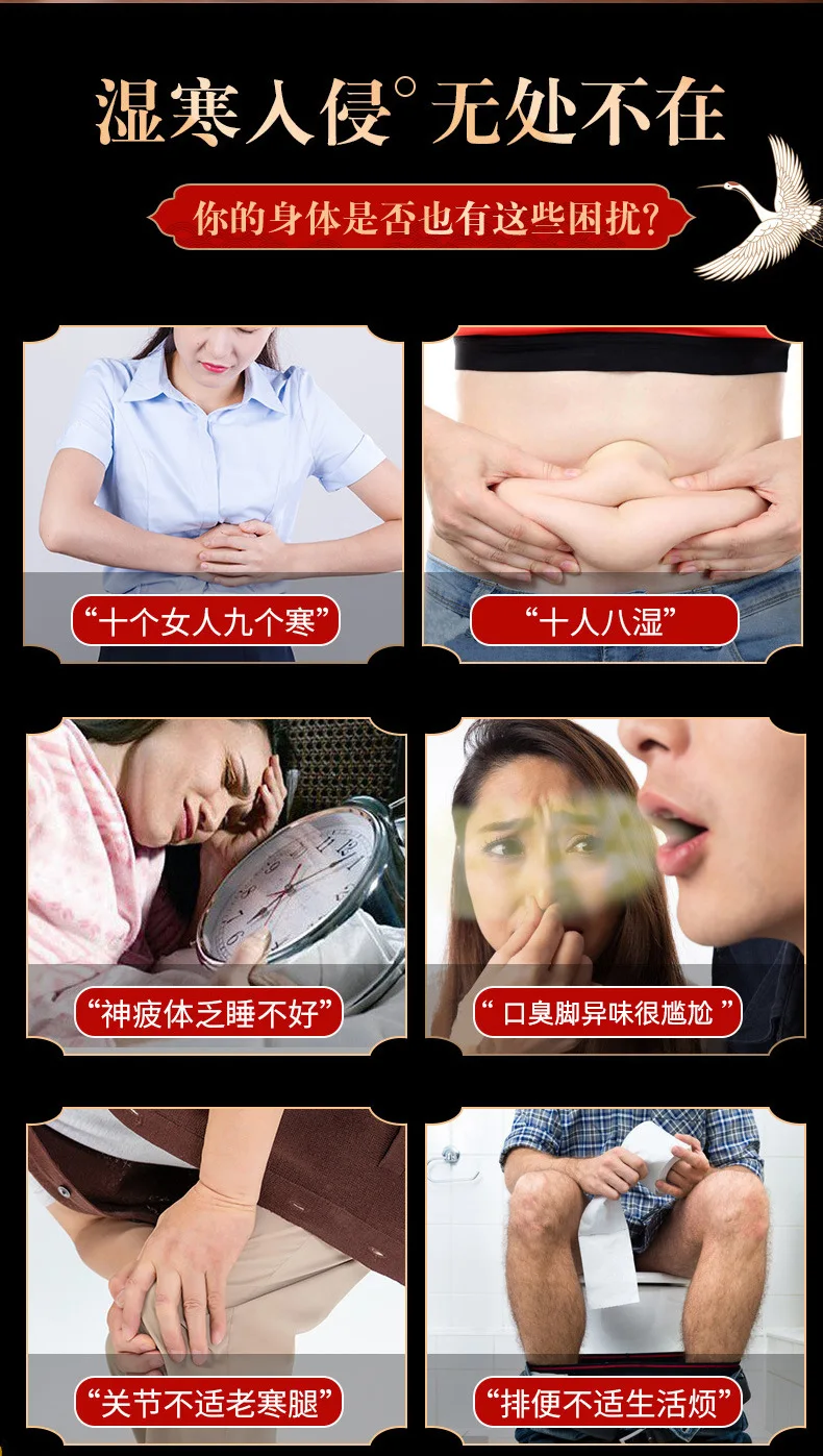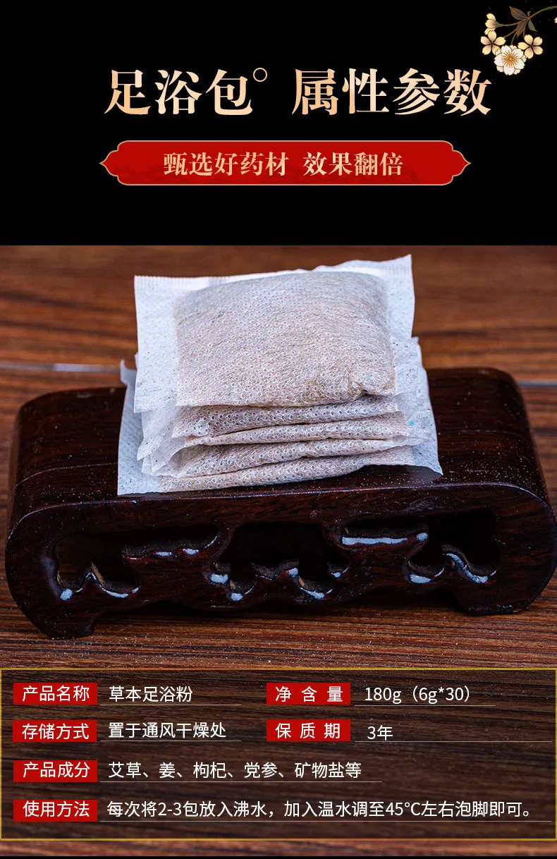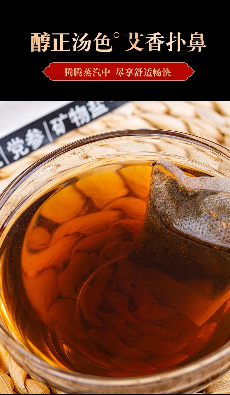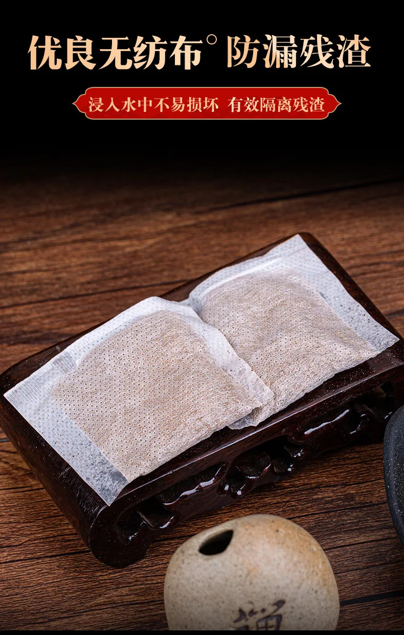 | tissu non tissé | 180g | absinthe, gingembre, goji, Codonopsis, sel minéral, etc. | 3 ans | le public | mettre 2 sacs dans l’eau bouillante à chaque fois, ajouter de l’eau chaude et ajuster la température à environ 45 Celsius |