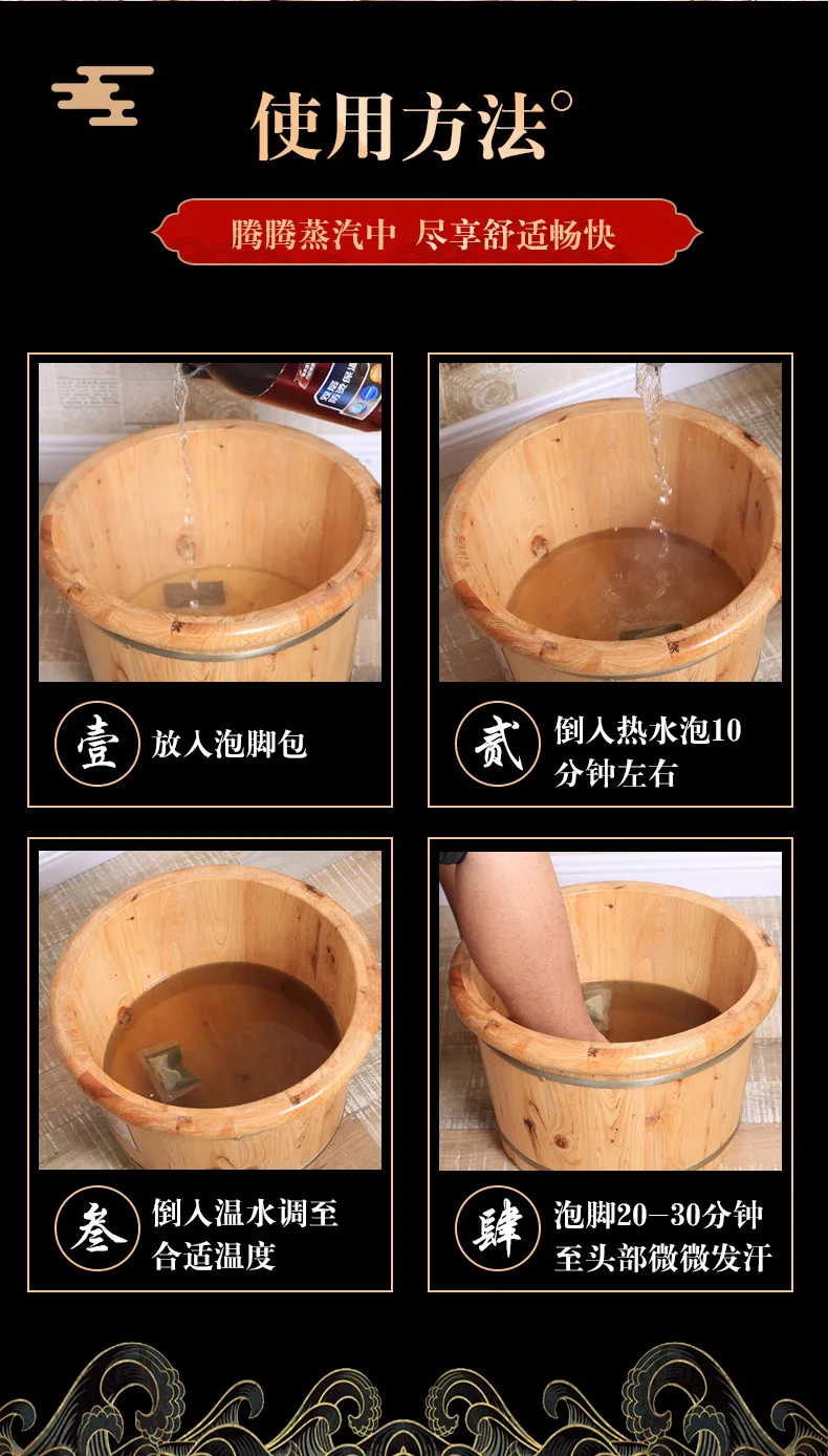 L’utilisation du produit est simple, il suffit de mettre 2 sacs dans de l’eau bouillante, d’ajouter de l’eau chaude et d’ajuster la température à environ 45 degrés Celsius. Il convient à tous les publics et peut être utilisé régulièrement pour un effet durable.