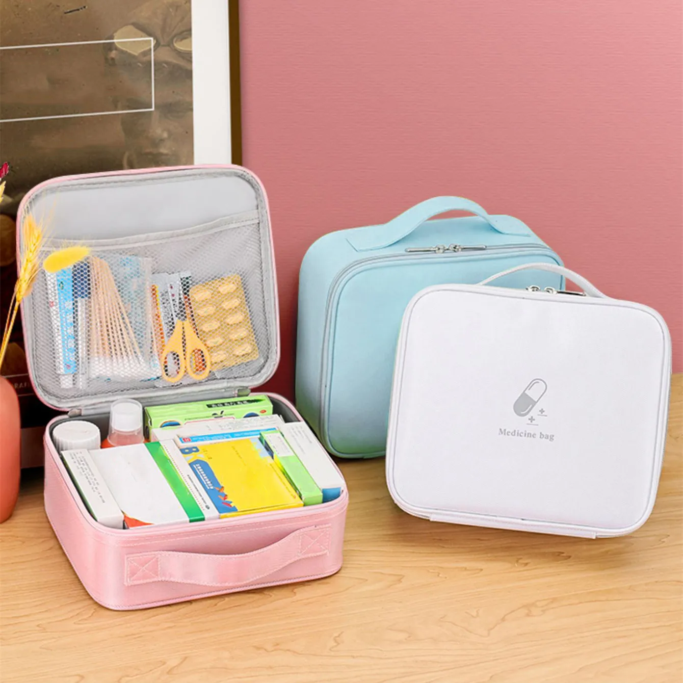 - Plusieurs poches internes pour trier et ranger les produits d’hygiène d’urgence