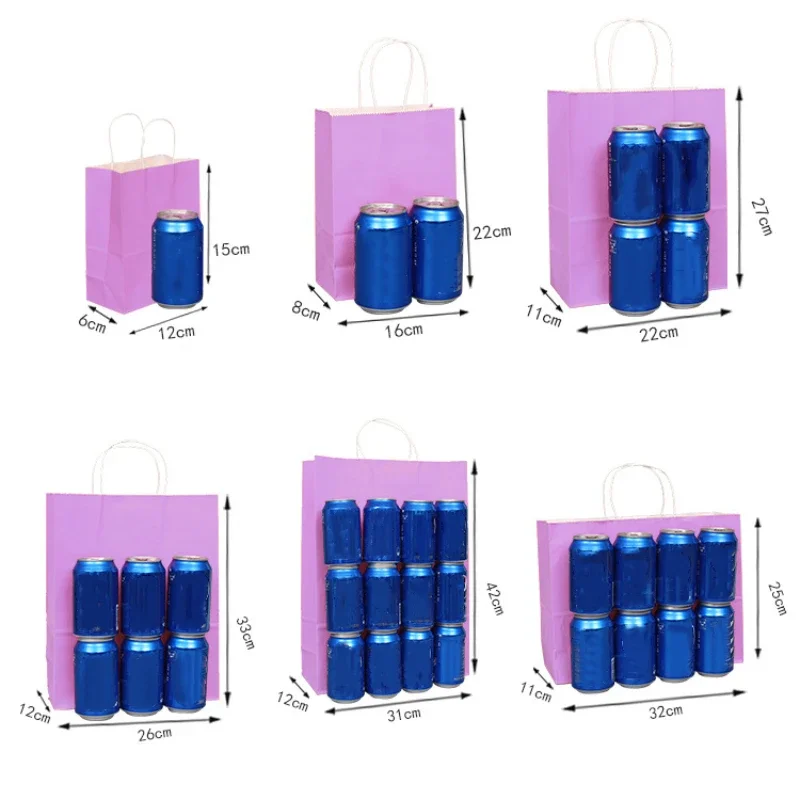 Les sacs cadeaux sont disponibles en différentes tailles : 12x15x6cm, 15x21x8cm, 21x