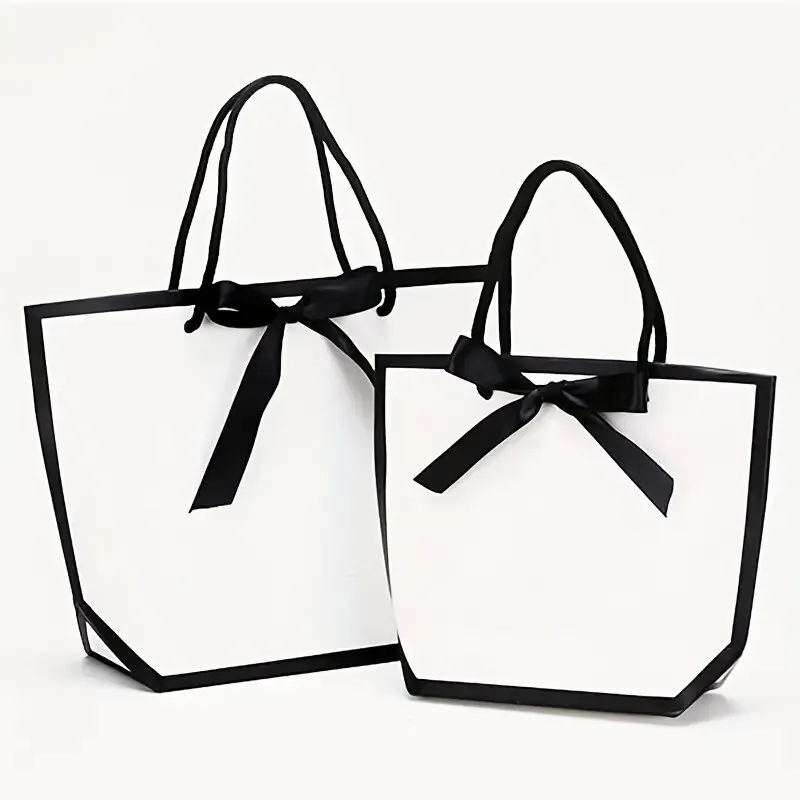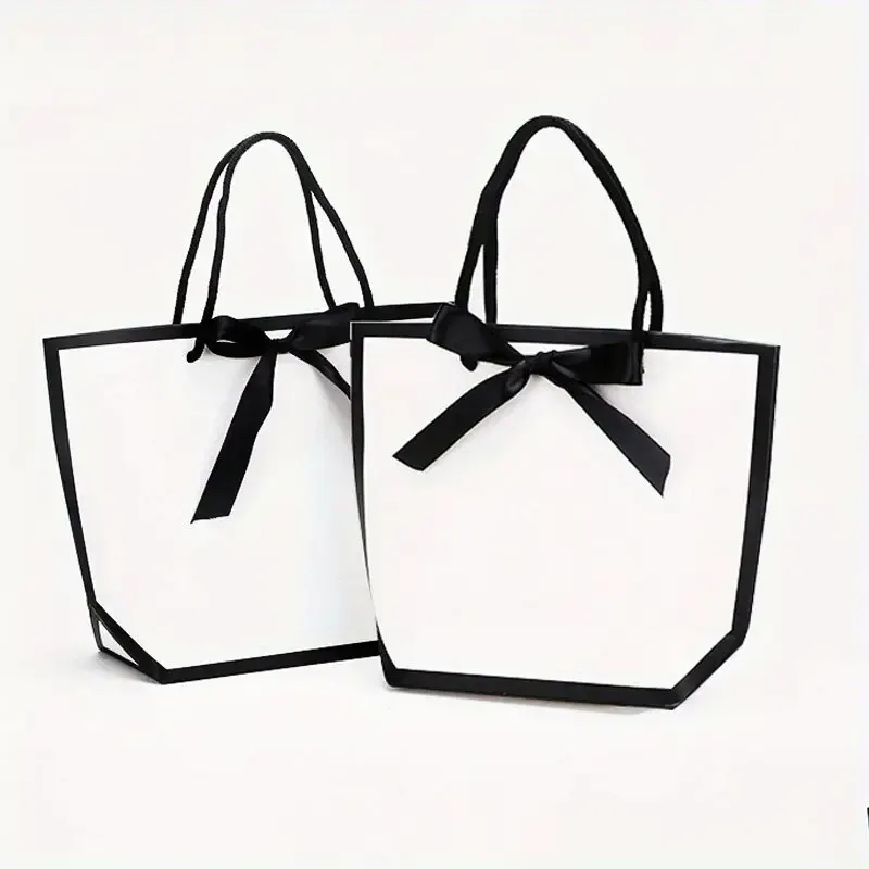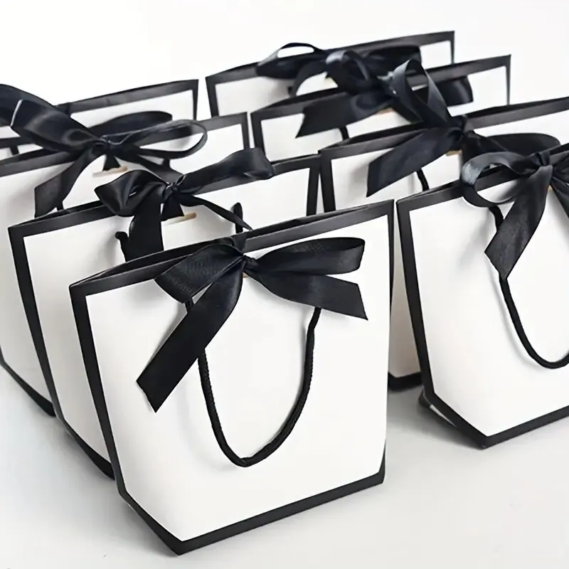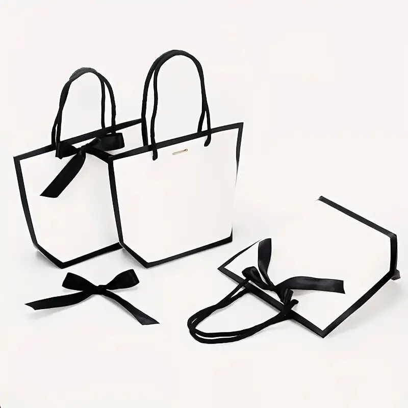 Sacs cadeaux fourre-tout en papier avec nœud en ruban, sacs de vente au détail, fête de mariage, fête d’anniversaire, blanc, 5 pièces