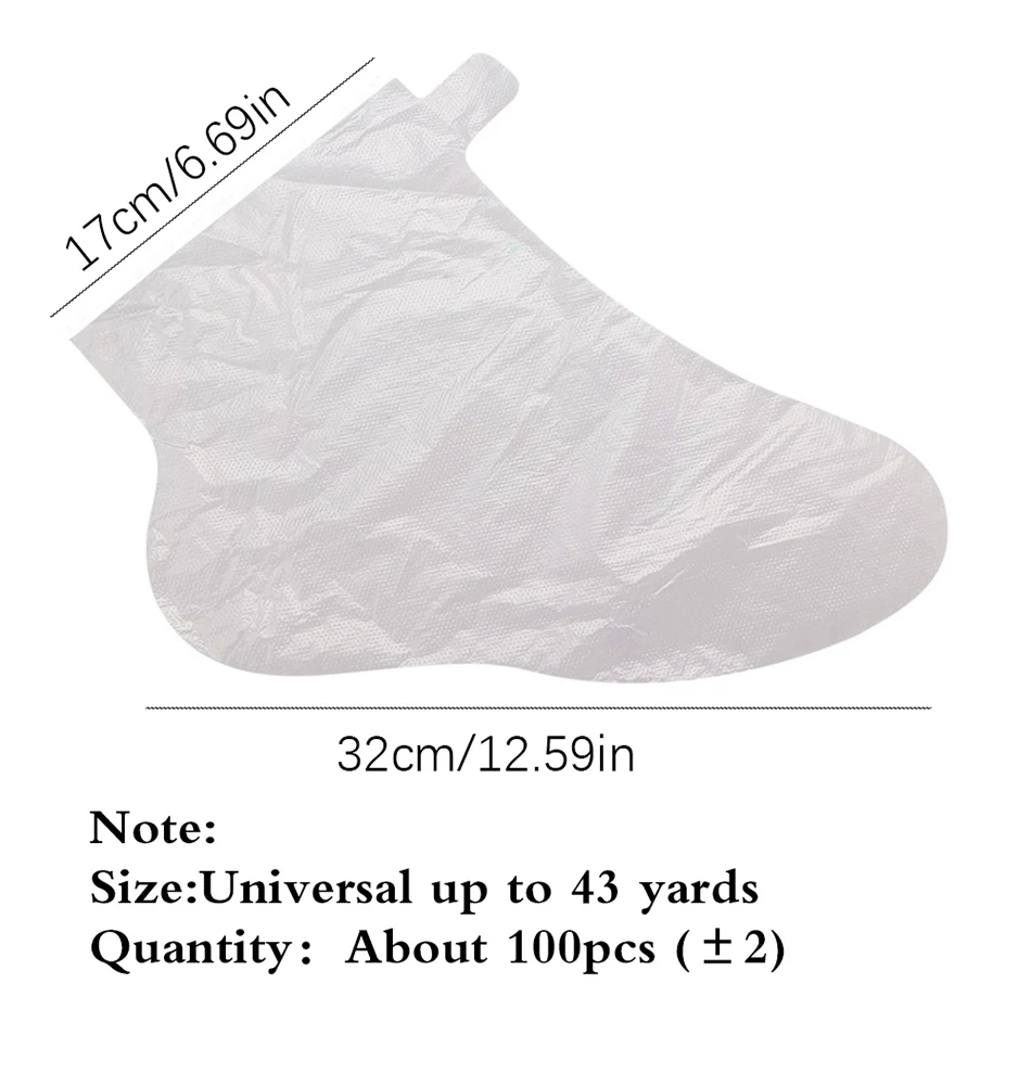 Chaque lot comprend 100 pièces, ce qui est suffisant pour plusieurs utilisations. Que vous soyez un professionnel ou que vous préfériez vous occuper de vos pieds à la maison, ces sacs vous permettront de prendre soin de vos pieds facilement et rapidement.