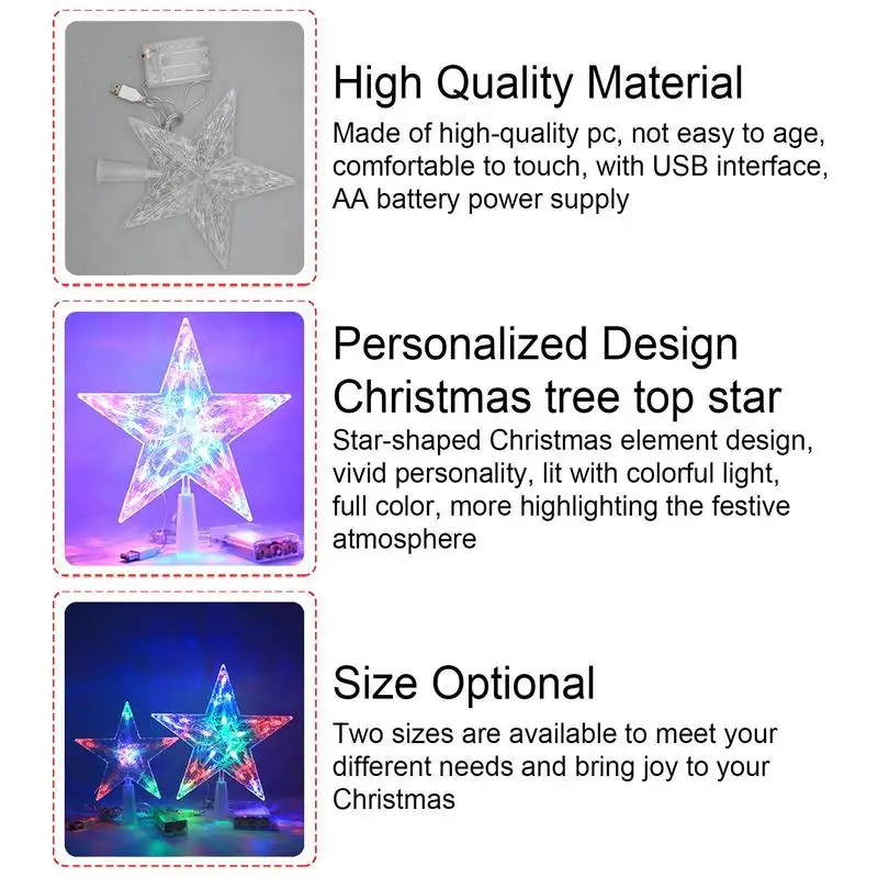 Surpris agréablement lorsque les lumières sont allumées, Christmas Tree Top Light est équipé de lumières LED, vous faire sentir comme vous êtes là avec les étoiles éblouissantes dans le ciel nocturne.