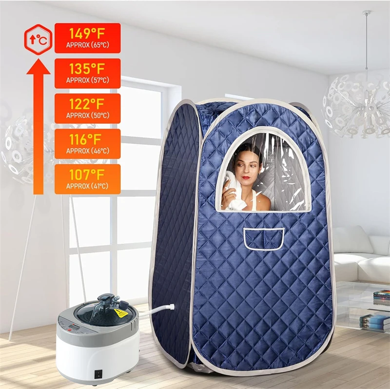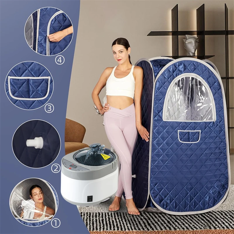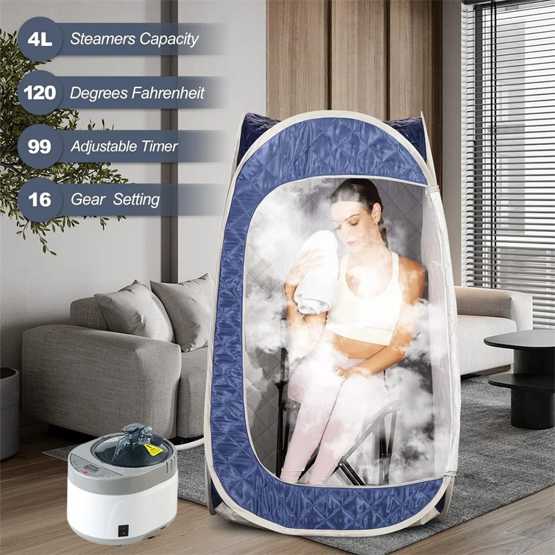 Le sauna à vapeur portable pour tout le corps, tente de spa à pliage rapide est un appareil de physiothérapie de sauna qui offre une expérience de spa privée. Le sauna à vapeur de 1500W peut remplir toute la tente en 8 minutes et offre 9 niveaux de chauffage pour une température maximale de 140°F. La chaudière à vapeur en acier inoxydable de 4L est sûre et durable, avec des fonctions de synchronisation, de réglage de la température et de protection de mise hors tension automatique. La tente de sauna est portable et pliable, ce qui facilite son assemblage et son rangement. Le matériau étanche de la tente évite les pertes de chaleur et offre une expérience confortable. Ce sauna à vapeur favorise la peau, soulage les douleurs articulaires, augmente la circulation sanguine et réduit le stress.