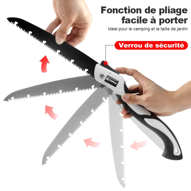 Réponse : Oui, la scie pliante FivePears est adaptée pour les travaux de jardinage tels que la taille des arbres, la coupe des branches et le défrichage.