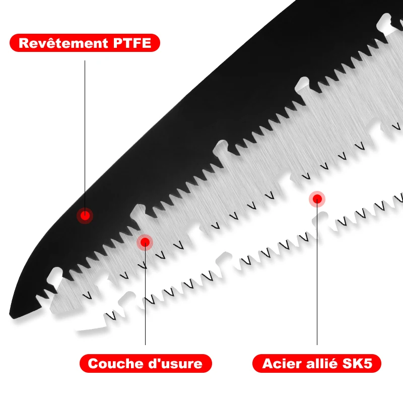 • Lame en acier allié SK5 avec revêtement téflon pour une durabilité accrue