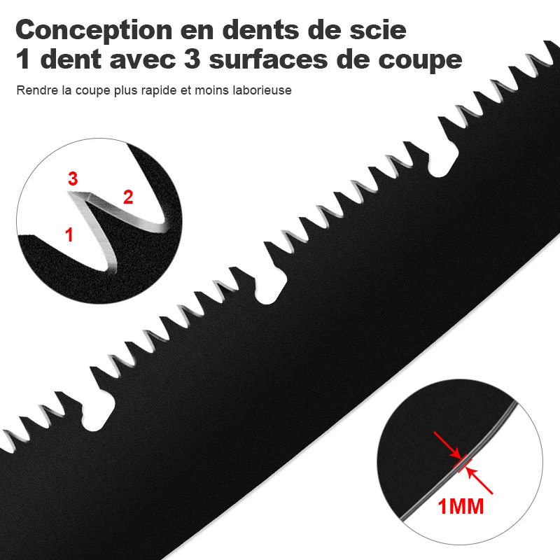 Réponse : Oui, la poignée de la scie pliante est antidérapante et offre une prise en main confortable.