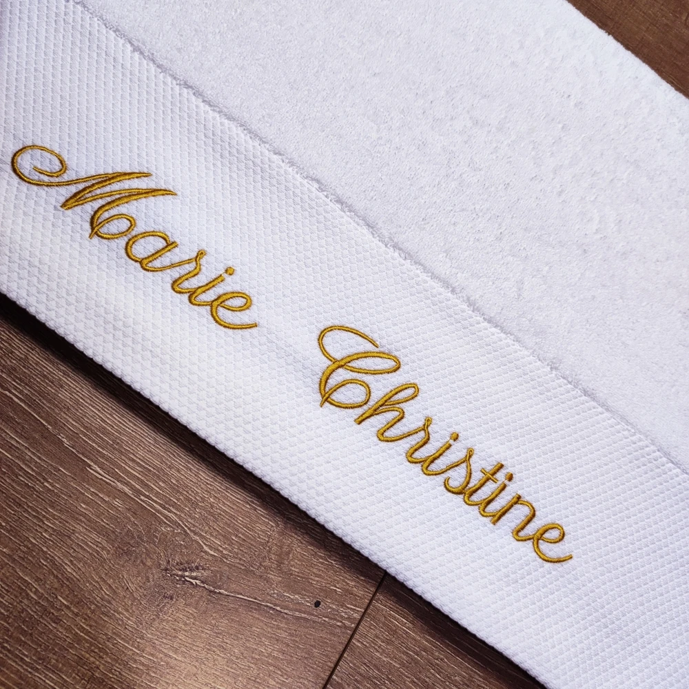 Si vous souhaitez personnaliser la serviette avec un logo ou un nom, vous pouvez nous envoyer une image du logo ou le nom souhaité. Vous pouvez également laisser un message avec votre commande. Veuillez noter que nous devons vérifier le logo au préalable.