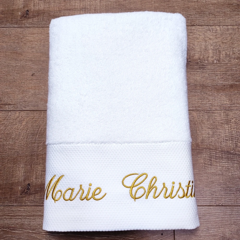 La serviette de bain en coton blanc avec logo personnalisé est un cadeau idéal pour un anniversaire de mariage. Les spécifications du produit incluent différentes tailles, allant de 32 * 32 cm à 80 * 160 cm, et des poids allant de 60 g à 800 g. La serviette est fabriquée à partir de coton pakistanais de haute qualité, avec un processus de fabrication en 16 spirales épaisses pour une durabilité optimale. La couleur blanche pure ajoute une touche d’élégance à la serviette.