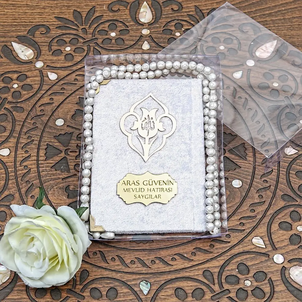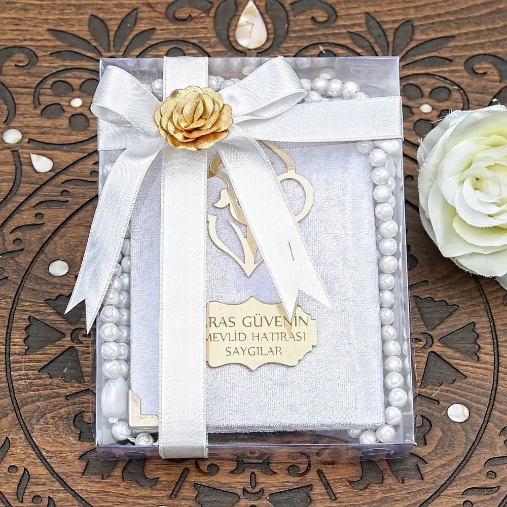 Ce set de cadeau musulman de luxe est idéal pour offrir lors de diverses occasions religieuses telles que Ramadan. Il est également parfait pour les commandes en gros, en tant que cadeau pour les événements Mevlüt ou pour les groupes religieux. La couverture en velours de luxe avec des bords en métal ajoute une touche de sophistication à ce set de cadeau.