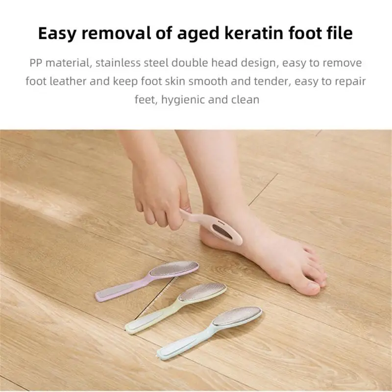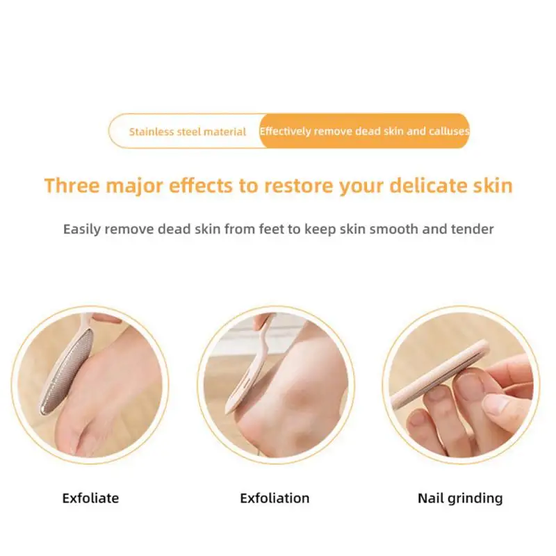 • Lime à pied en cuir moulu en acier inoxydable, design double face, nettoie entièrement le côté, le dessus et le talon du pied. Détendre les nerfs plantaires, soulager la fatigue.