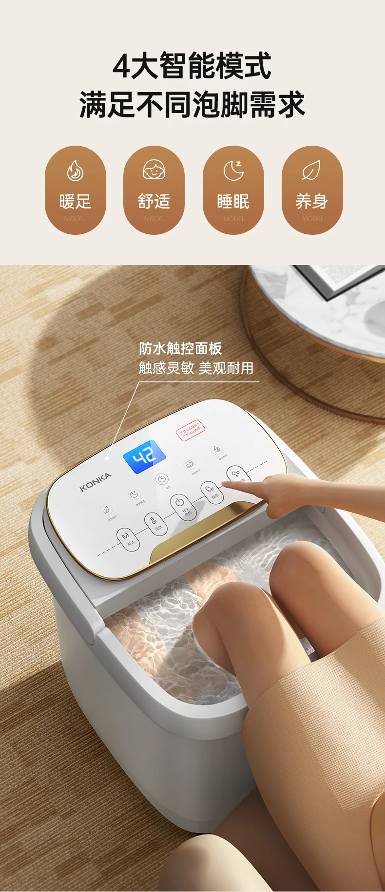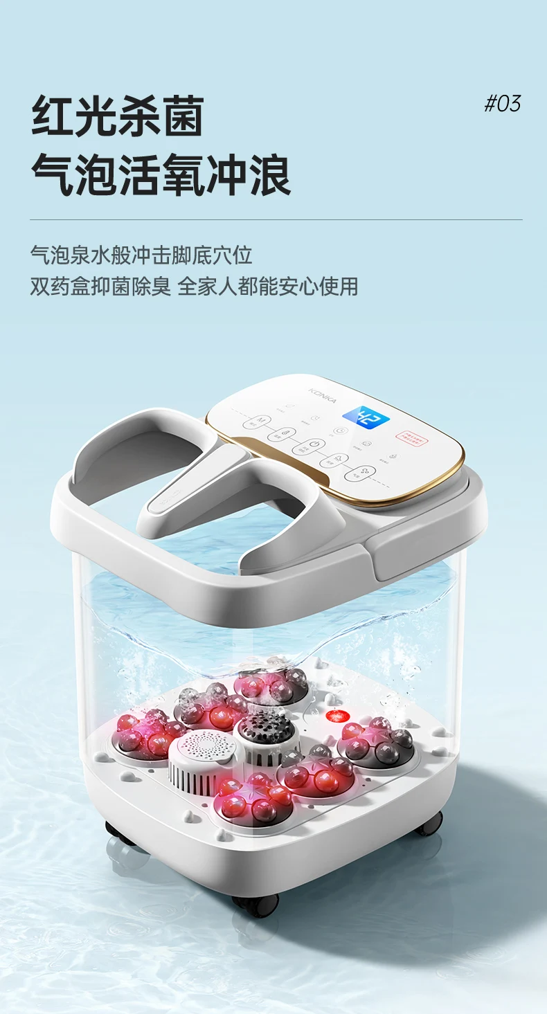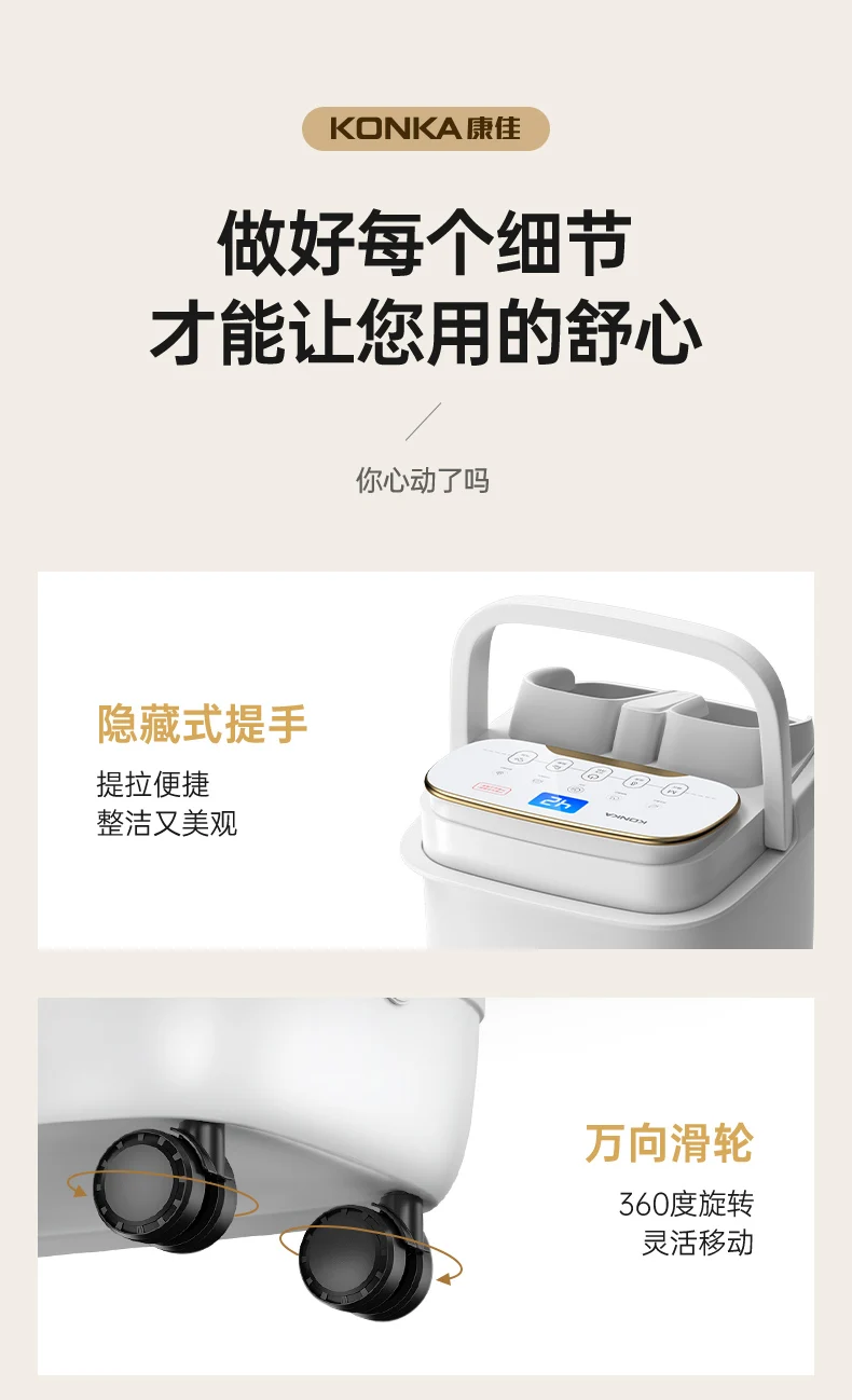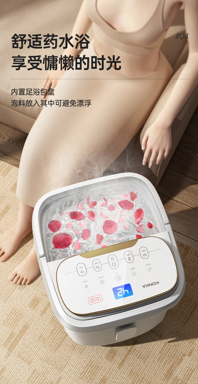 Chauffage entièrement automatique et température constante: oubliez les tracas d’ajouter manuellement de l’eau et d’ajuster la température. La baignoire pour les pieds Konka la complète automatiquement pour vous, en maintenant une température d’eau appropriée quel que soit l’hiver ou l’été, permettant à vos pieds de profiter de l’expérience de massage la plus confortable.